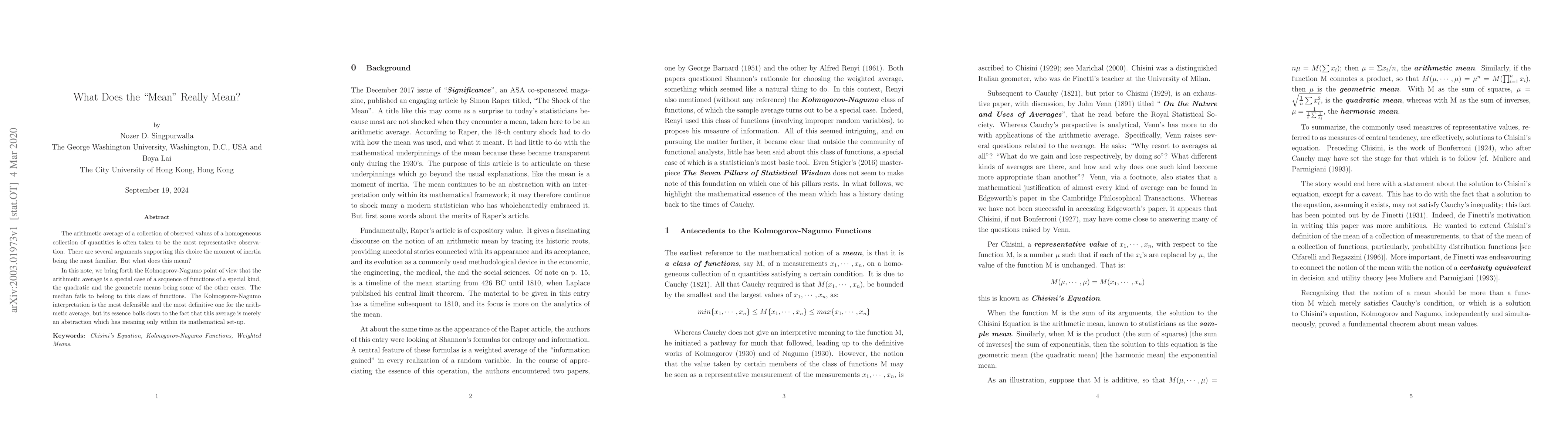 This paper explores the Kolmogorov-Nagumo perspective on the arithmetic average, arguing it is a special case within a sequence of functions including quadratic and geometric means, while the median does not fit this framework. The arithmetic average is deemed meaningful only within its mathematical context.