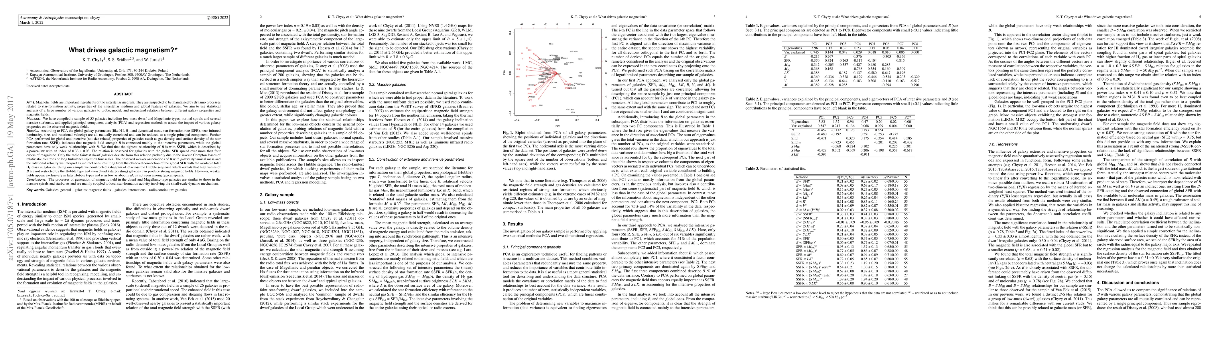 A study of 55 galaxies found that magnetic field strength is mainly connected to intensive galaxy properties like star formation rate, while global parameters have weak relationships. Magnetic fields appear exclusively in later Hubble types and are not restricted by galaxy type.