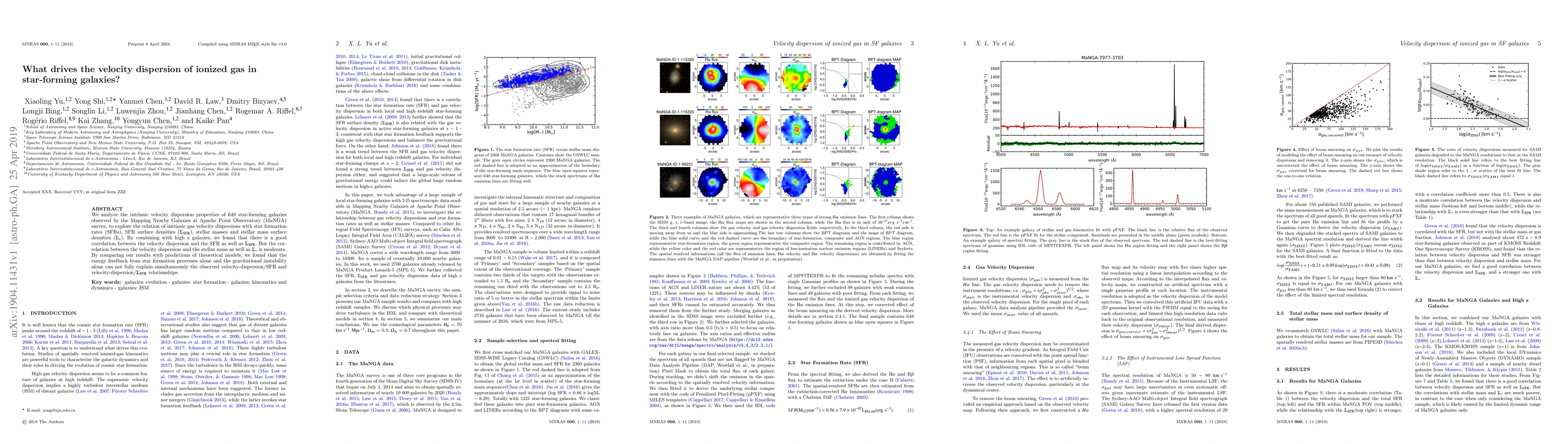 This study investigates the velocity dispersion of ionized gas in 648 star-forming galaxies from the MaNGA survey, revealing a strong correlation between gas velocity dispersion and star formation rates, but a moderate correlation with stellar mass. Theoretical models suggest that neither star formation feedback nor gravitational instability alone can fully explain the observed relationships.