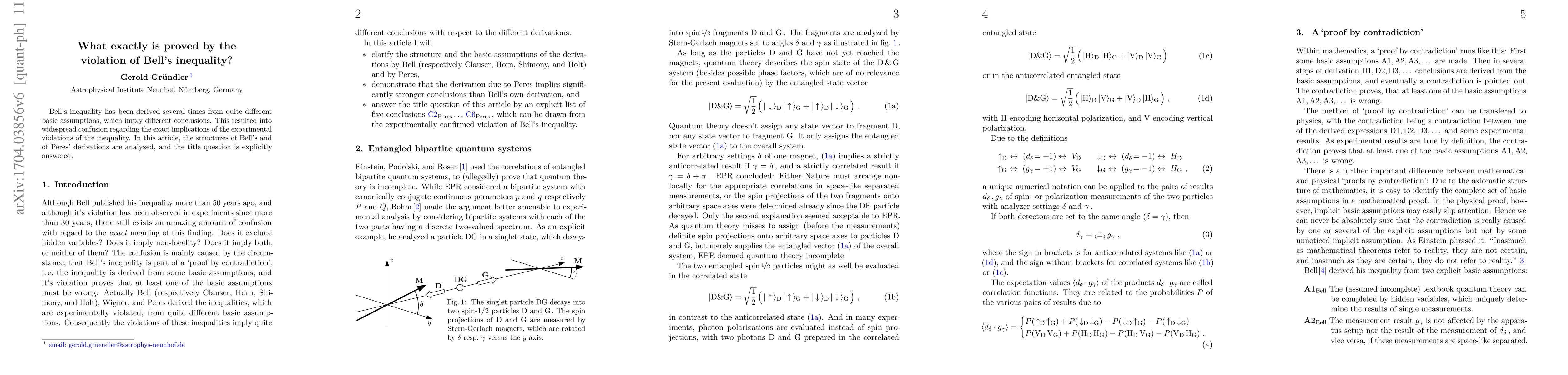 Bell's inequality has been derived several times from quite different basic assumptions, which imply different conclusions. This resulted into widespread confusion regarding the exact implications of the experimental violations of the inequality. In this article, the structures of Bell's and of Peres' derivations are analyzed, and the title question is explicitly answered.
