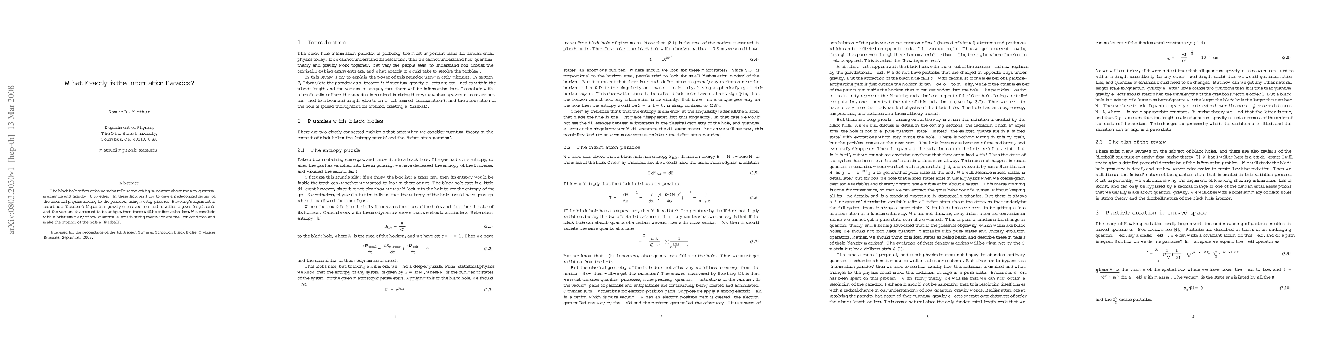The black hole information paradox highlights the conflict between quantum mechanics and gravity, suggesting information loss in quantum gravity. String theory's quantum effects propose a "fuzzball" interior, resolving the paradox by violating the condition causing information loss.