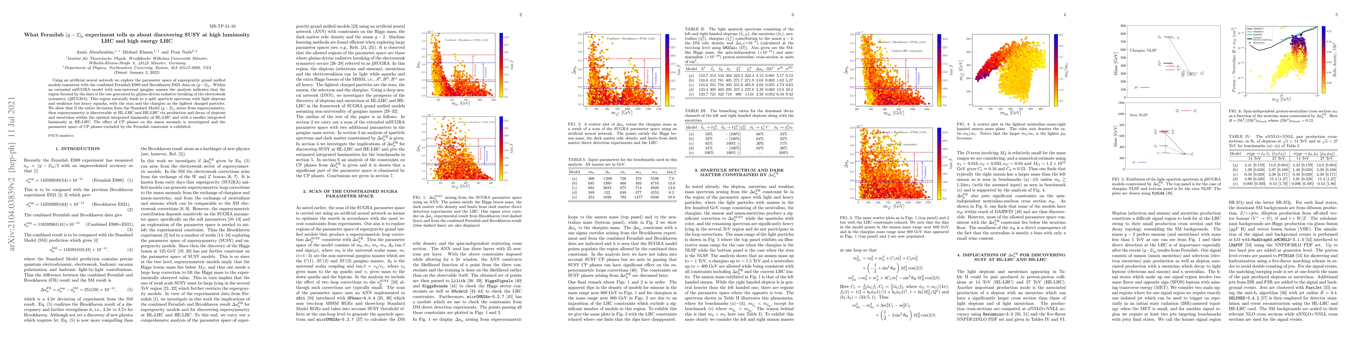 Using an artificial neutral network we explore the parameter space of supergravity grand unified models consistent with the combined Fermilab E989 and Brookhaven E821 data on $(g-2)_\mu$. The analysis indicates that the region favored by the data is the one generated by gluino-driven radiative breaking of the electroweak symmetry. This region naturally leads to a split sparticle spectrum with light sleptons and weakinos but heavy squarks, with the stau and the chargino as the lightest charged particles. We show that if the entire deviation from the standard model $(g-2)_{\mu}$ arises from supersymmetry, then supersymmetry is discoverable at HL-LHC and HE-LHC via production and decay of sleptons within the optimal integrated luminosity of HL-LHC and with a smaller integrated luminosity at HE-LHC.