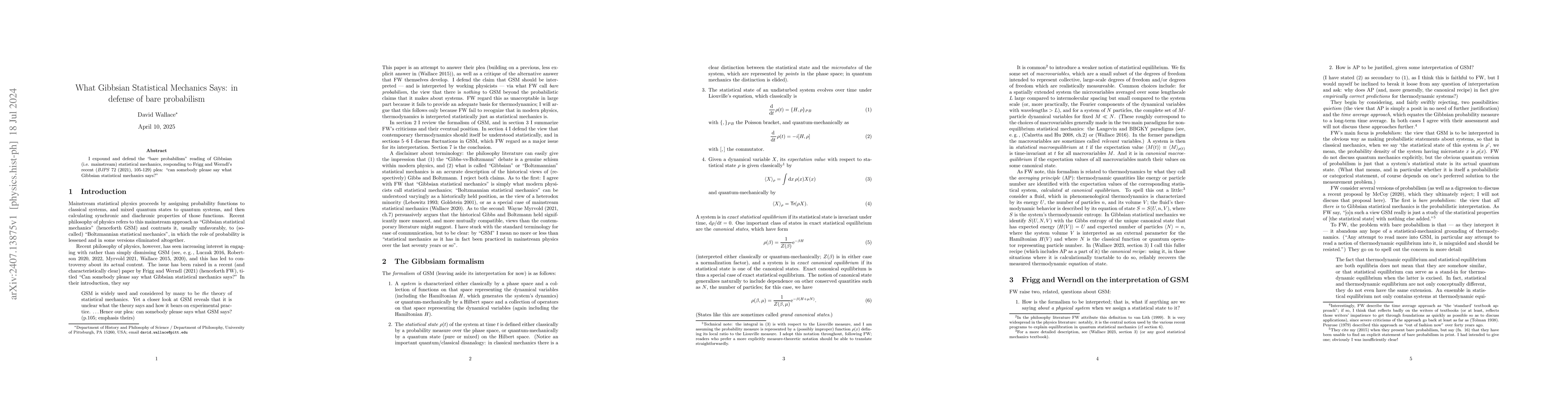 This paper defends the "bare probabilism" interpretation of Gibbsian statistical mechanics, arguing against critiques that question its foundational principles, in response to Frigg and Werndl's challenge for clarification on what Gibbsian statistical mechanics fundamentally asserts.