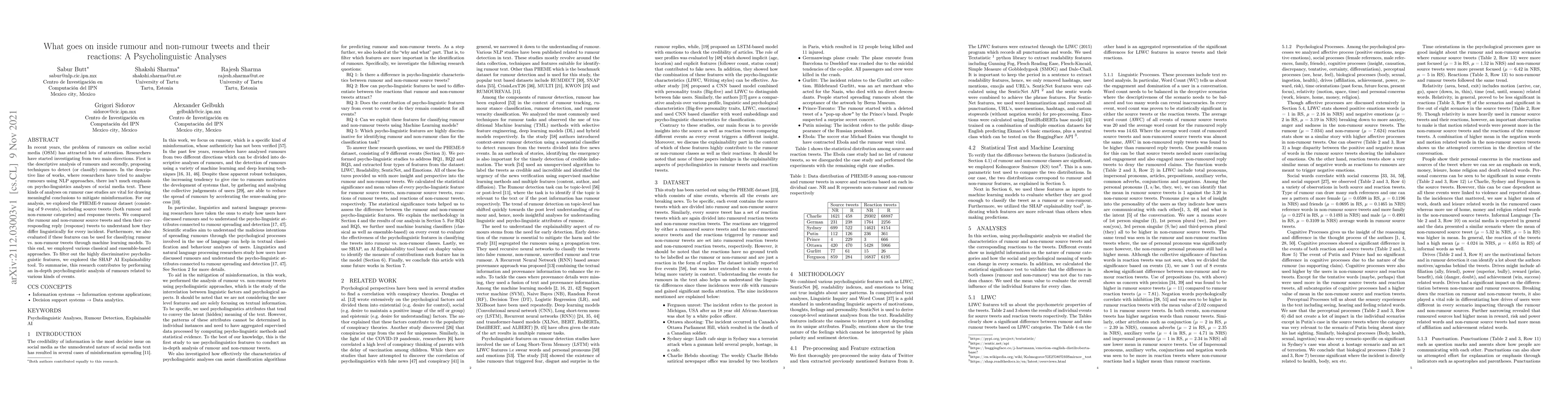This research paper performs a psycholinguistic analysis of rumour and non-rumour tweets to understand their linguistic differences and explores whether these features can be used to classify rumours through machine learning models.