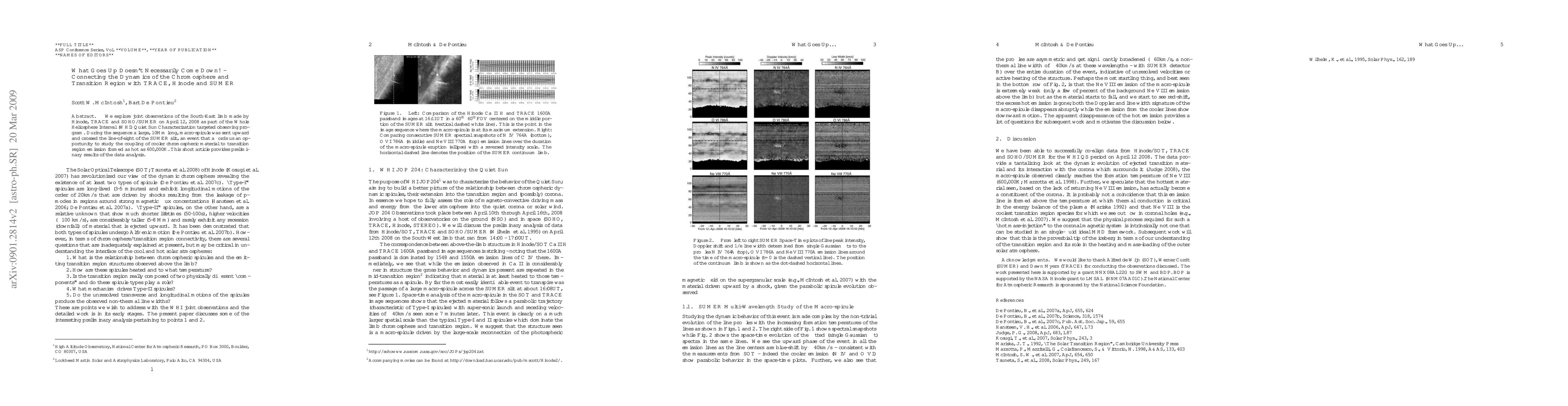 We explore joint observations of the South-East limb made by Hinode, TRACE and SOHO/SUMER on April 12, 2008 as part of the Whole Heliosphere Interval (WHI) Quiet Sun Characterization targeted observing program. During the sequence a large, 10Mm long, macro-spicule was sent upward and crossed the line-of-sight of the SUMER slit, an event that affords us an opportunity to study the coupling of cooler chromospheric material to transition region emission formed as hot as 600,000K. This short article provides preliminary results of the data analysis.
