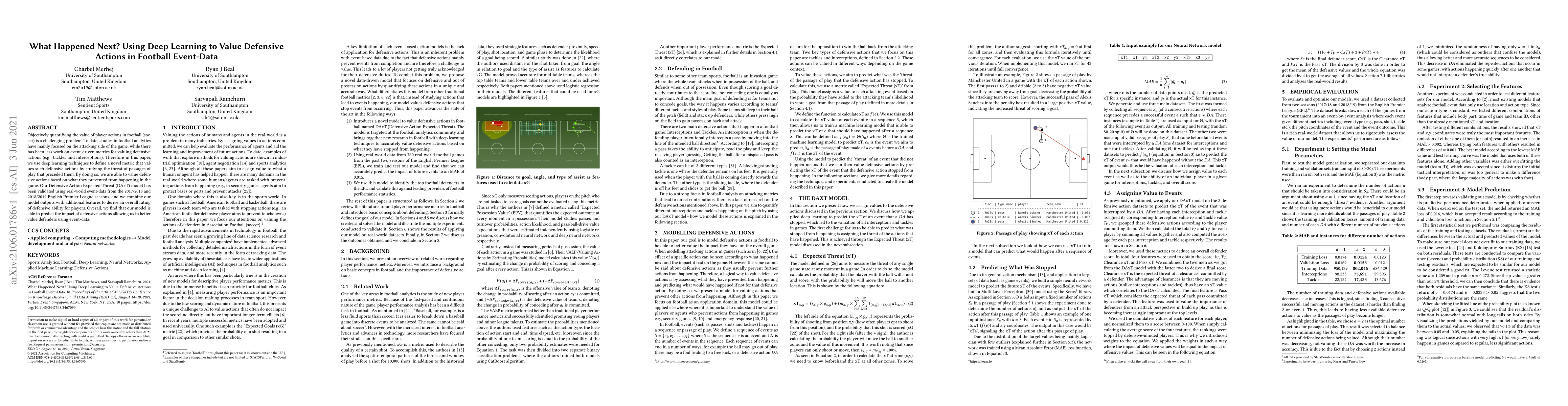 Objectively quantifying the value of player actions in football (soccer) is a challenging problem. To date, studies in football analytics have mainly focused on the attacking side of the game, while there has been less work on event-driven metrics for valuing defensive actions (e.g., tackles and interceptions). Therefore in this paper, we use deep learning techniques to define a novel metric that values such defensive actions by studying the threat of passages of play that preceded them. By doing so, we are able to value defensive actions based on what they prevented from happening in the game. Our Defensive Action Expected Threat (DAxT) model has been validated using real-world event-data from the 2017/2018 and 2018/2019 English Premier League seasons, and we combine our model outputs with additional features to derive an overall rating of defensive ability for players. Overall, we find that our model is able to predict the impact of defensive actions allowing us to better value defenders using event-data.