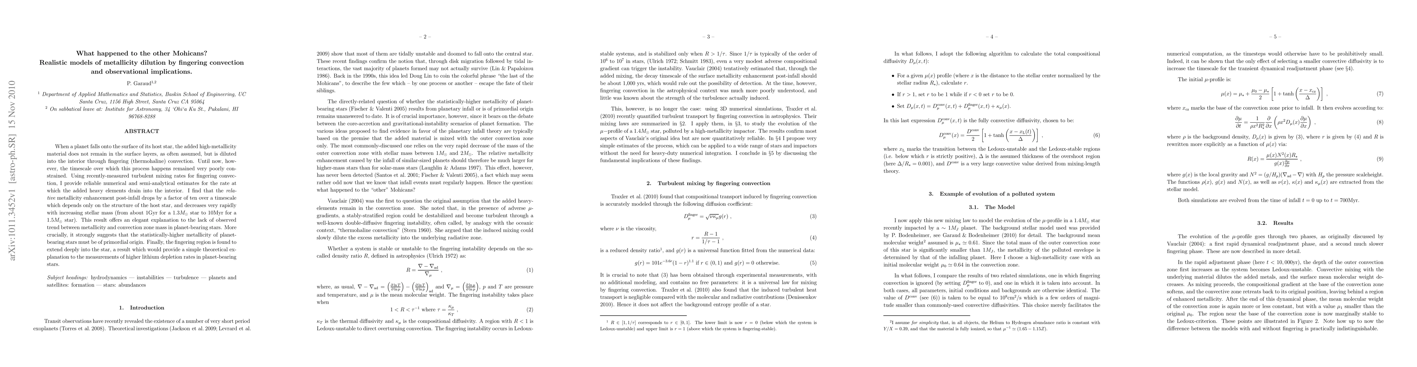 When a planet falls onto the surface of its host star, the added high-metallicity material does not remain in the surface layers, as often assumed, but is diluted into the interior through fingering (thermohaline) convection. Until now, however, the timescale over which this process happens remained very poorly constrained. Using recently-measured turbulent mixing rates for fingering convection, I provide reliable numerical and semi-analytical estimates for the rate at which the added heavy elements drain into the interior. I find that the relative metallicity enhancement post-infall drops by a factor of ten over a timescale which depends only on the structure of the host star, and decreases very rapidly with increasing stellar mass (from about 1Gyr for a 1.3M_sun star to 10Myr for a 1.5M_sun star). This result offers an elegant explanation to the lack of observed trend between metallicity and convection zone mass in planet-bearing stars. More crucially, it strongly suggests that the statistically-higher metallicity of planet-bearing stars must be of primordial origin. Finally, the fingering region is found to extend deeply into the star, a result which would provide a simple theoretical explanation to the measurements of higher lithium depletion rates in planet-bearing stars.