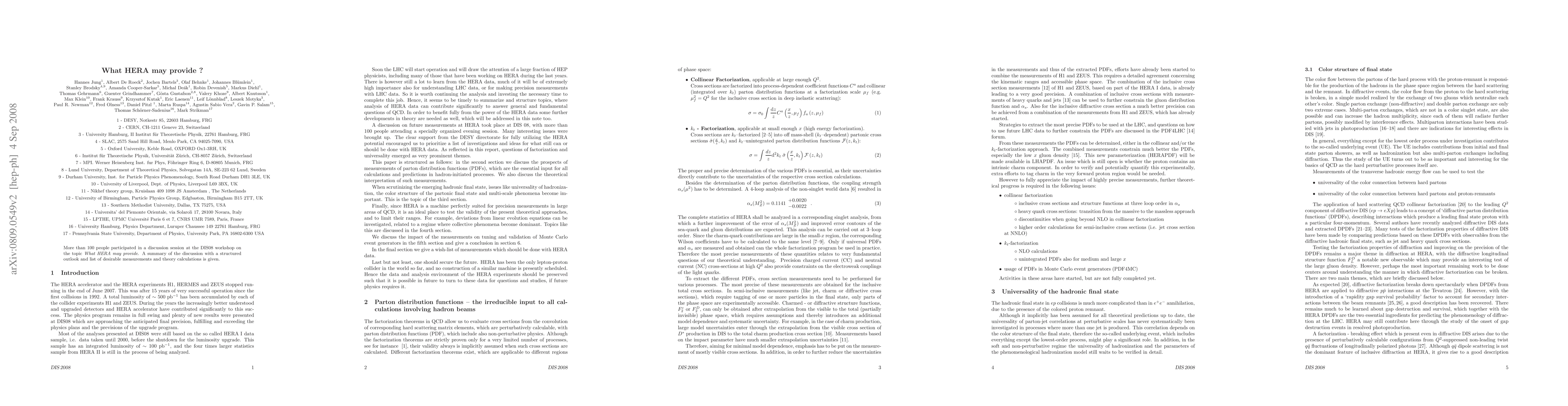 More than 100 people participated in a discussion session at the DIS08 workshop on the topic What HERA may provide. A summary of the discussion with a structured outlook and list of desirable measurements and theory calculations is given.