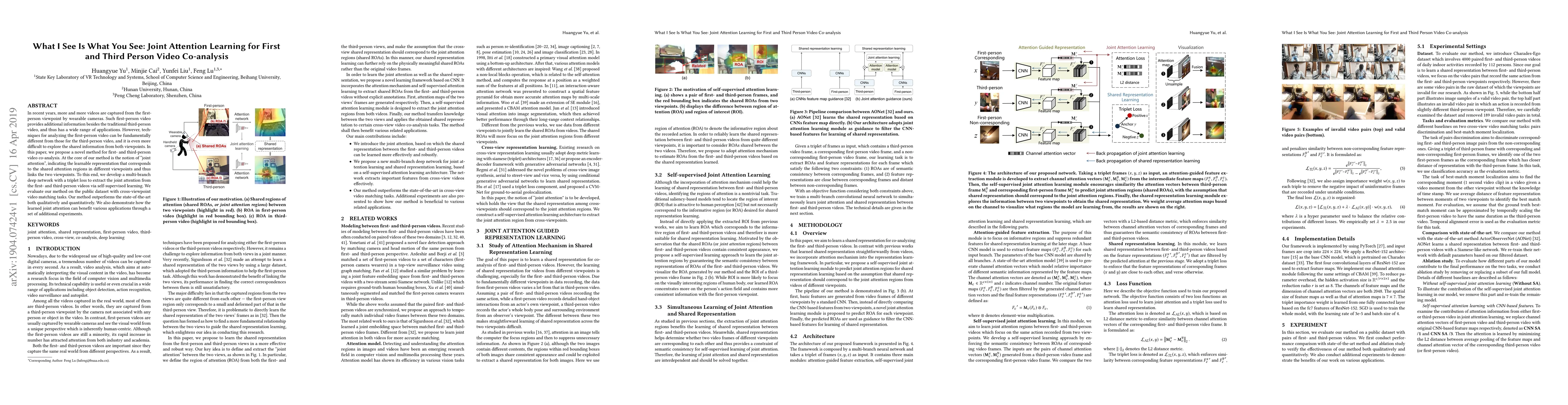 In recent years, more and more videos are captured from the first-person viewpoint by wearable cameras. Such first-person video provides additional information besides the traditional third-person video, and thus has a wide range of applications. However, techniques for analyzing the first-person video can be fundamentally different from those for the third-person video, and it is even more difficult to explore the shared information from both viewpoints. In this paper, we propose a novel method for first- and third-person video co-analysis. At the core of our method is the notion of "joint attention", indicating the learnable representation that corresponds to the shared attention regions in different viewpoints and thus links the two viewpoints. To this end, we develop a multi-branch deep network with a triplet loss to extract the joint attention from the first- and third-person videos via self-supervised learning. We evaluate our method on the public dataset with cross-viewpoint video matching tasks. Our method outperforms the state-of-the-art both qualitatively and quantitatively. We also demonstrate how the learned joint attention can benefit various applications through a set of additional experiments.