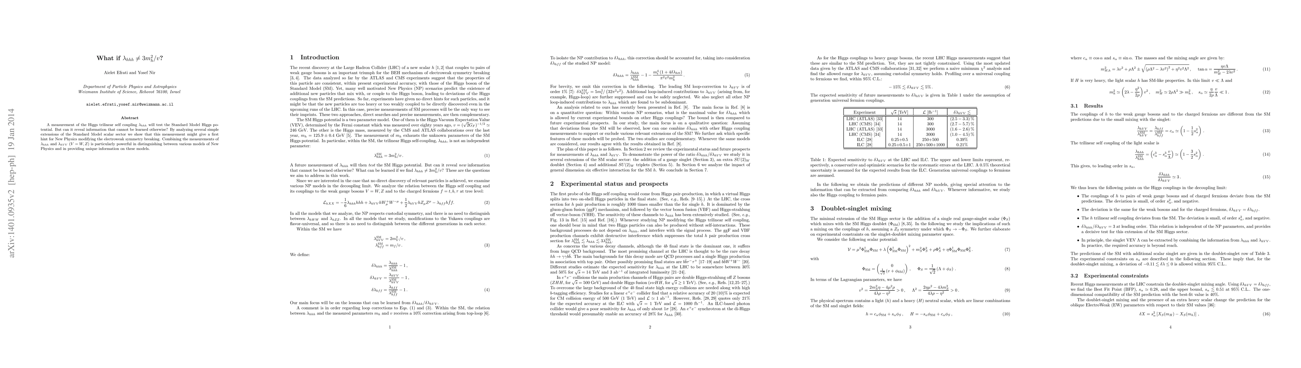 New physics modifications to electroweak symmetry breaking may reveal themselves through a Higgs trilinear self coupling measurement, offering unique insights when combined with other measurements.