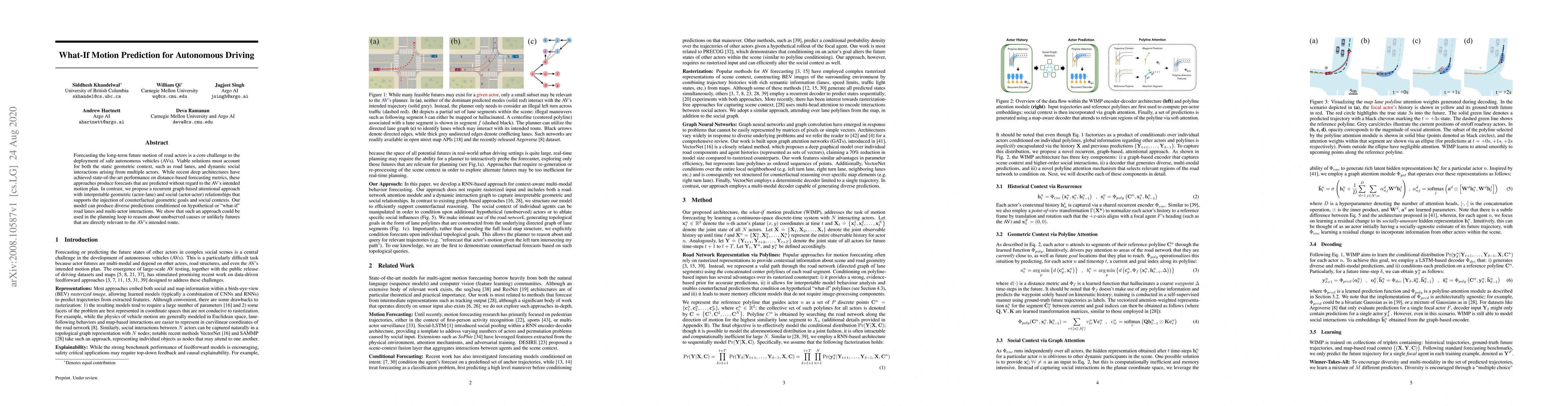 Forecasting the long-term future motion of road actors is a core challenge to the deployment of safe autonomous vehicles (AVs). Viable solutions must account for both the static geometric context, such as road lanes, and dynamic social interactions arising from multiple actors. While recent deep architectures have achieved state-of-the-art performance on distance-based forecasting metrics, these approaches produce forecasts that are predicted without regard to the AV's intended motion plan. In contrast, we propose a recurrent graph-based attentional approach with interpretable geometric (actor-lane) and social (actor-actor) relationships that supports the injection of counterfactual geometric goals and social contexts. Our model can produce diverse predictions conditioned on hypothetical or "what-if" road lanes and multi-actor interactions. We show that such an approach could be used in the planning loop to reason about unobserved causes or unlikely futures that are directly relevant to the AV's intended route.
