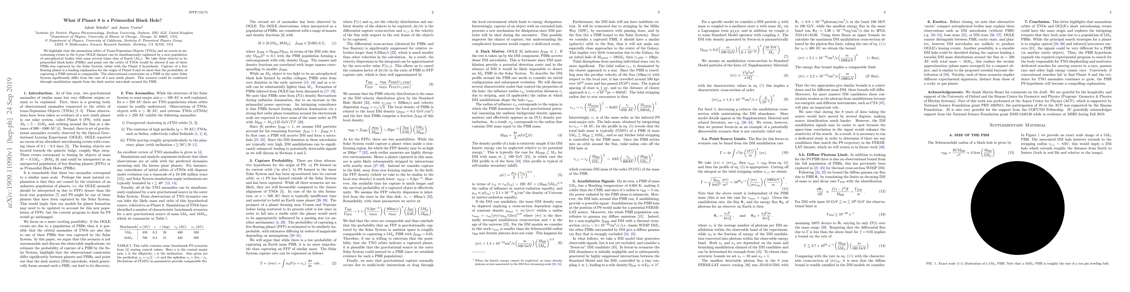 New research suggests that the mysterious Planet 9 could actually be a primordial black hole, which could explain anomalous orbits of Trans-Neptunian Objects and excess microlensing events in the OGLE dataset.