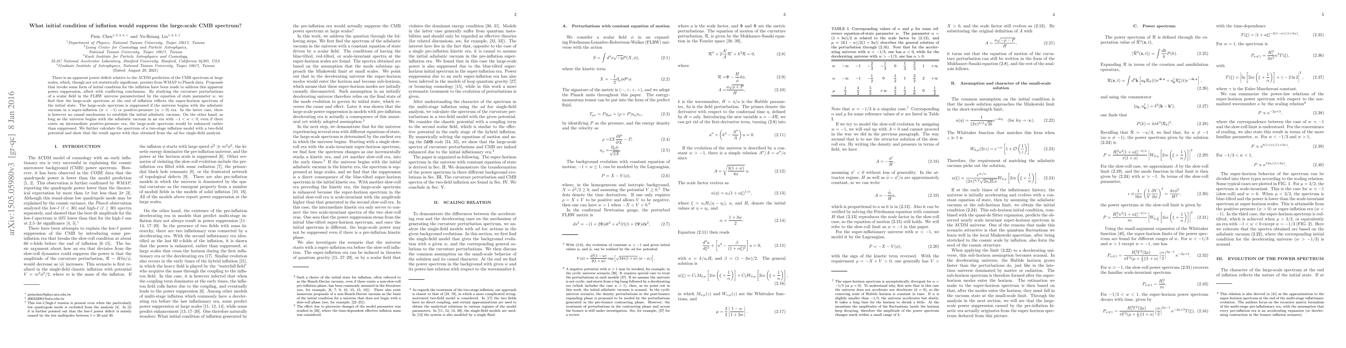 There is an apparent power deficit relative to the $\Lambda$CDM prediction of the CMB spectrum at large scales, which, though not yet statistically significant, persists from WMAP to Planck data. Proposals that invoke some form of initial condition for the inflation have been made to address this apparent power suppression, albeit with conflicting conclusions. By studying the curvature perturbations of a scalar field in the FLRW universe parameterized by the equation of state parameter $w$, we find that the large-scale spectrum at the end of inflation reflects the super-horizon spectrum of the initial state. The large-scale spectrum is suppressed if the universe begins with the adiabatic vacuum in a super-inflation ($w < -1$) or positive-pressure ($w > 0$) era. In the latter case, there is however no causal mechanism to establish the initial adiabatic vacuum. On the other hand, as long as the universe begins with the adiabatic vacuum in an era with $-1 < w < 0$, even if there exists an intermediate positive-pressure era, the large-scale spectrum would be enhanced rather than suppressed. We further calculate the spectrum of a two-stage inflation model with a two-field potential and show that the result agrees with that obtained from the ad hoc single-field analysis.