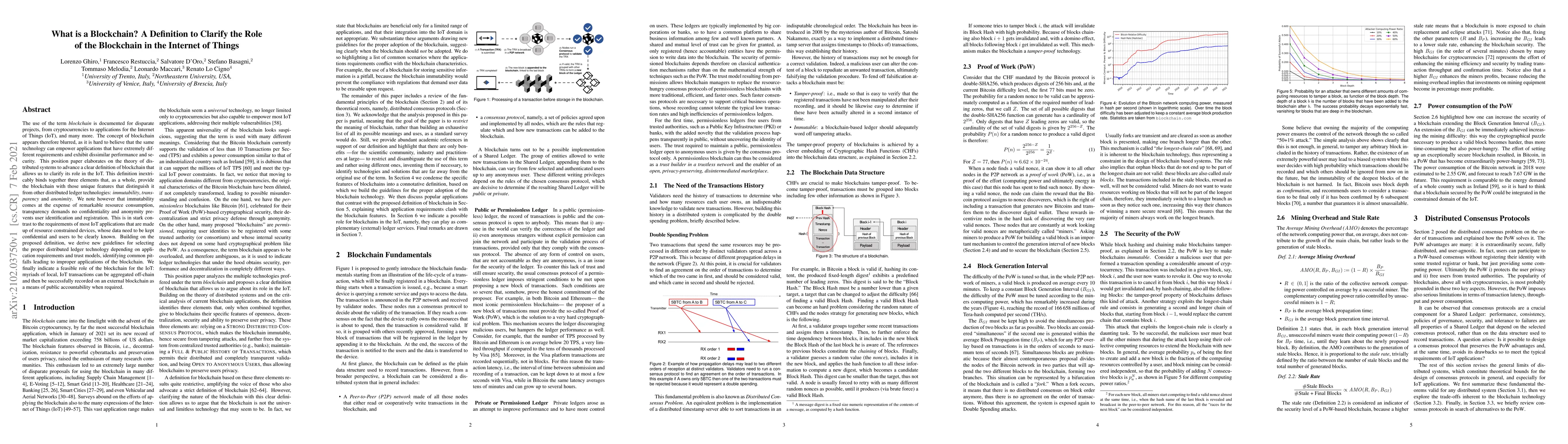 The use of the term blockchain is documented for disparate projects, from cryptocurrencies to applications for the Internet of Things (IoT), and many more. The concept of blockchain appears therefore blurred, as it is hard to believe that the same technology can empower applications that have extremely different requirements and exhibit dissimilar performance and security. This position paper elaborates on the theory of distributed systems to advance a clear definition of blockchain that allows us to clarify its role in the IoT. This definition inextricably binds together three elements that, as a whole, provide the blockchain with those unique features that distinguish it from other distributed ledger technologies: immutability, transparency and anonimity. We note however that immutability comes at the expense of remarkable resource consumption, transparency demands no confidentiality and anonymity prevents user identification and registration. This is in stark contrast to the requirements of most IoT applications that are made up of resource constrained devices, whose data need to be kept confidential and users to be clearly known. Building on the proposed definition, we derive new guidelines for selecting the proper distributed ledger technology depending on application requirements and trust models, identifying common pitfalls leading to improper applications of the blockchain. We finally indicate a feasible role of the blockchain for the IoT: myriads of local, IoT transactions can be aggregated off-chain and then be successfully recorded on an external blockchain as a means of public accountability when required.