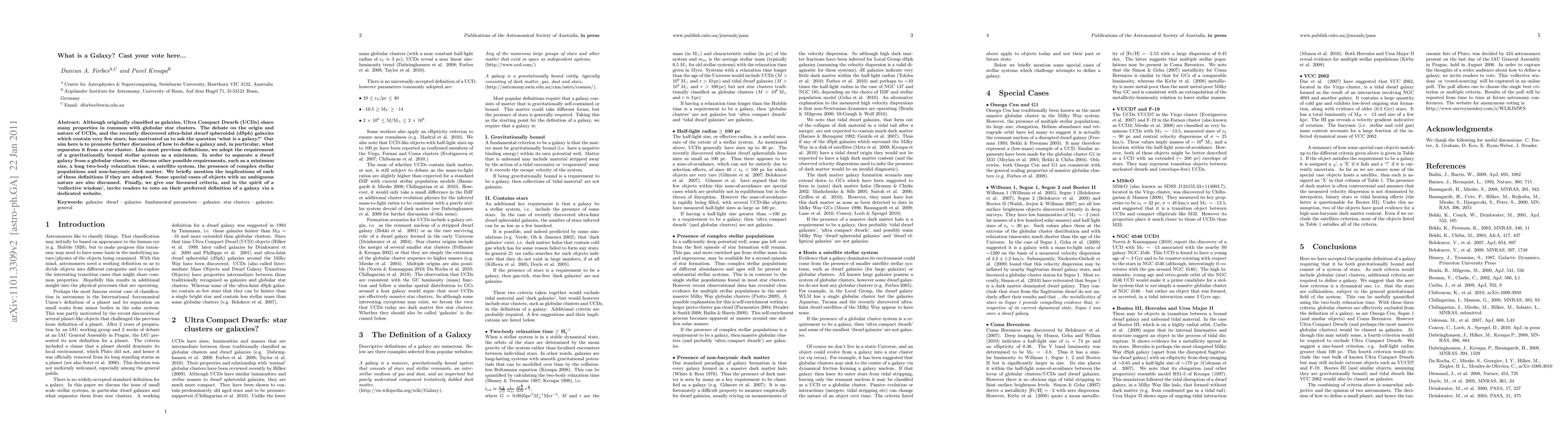 Although originally classified as galaxies, Ultra Compact Dwarfs (UCDs) share many properties in common with globular star clusters. The debate on the origin and nature of UCDs, and the recently discovered ultra-faint dwarf spheroidal (dSph) galaxies which contain very few stars, has motivated us to ask the question `what is a galaxy?' Our aim here is to promote further discussion of how to define a galaxy and, in particular, what separates it from a star cluster. Like most previous definitions, we adopt the requirement of a gravitationally bound stellar system as a minimum. In order to separate a dwarf galaxy from a globular cluster, we discuss other possible requirements, such as a minimum size, a long two-body relaxation time, a satellite system, the presence of complex stellar populations and non-baryonic dark matter. We briefly mention the implications of each of these definitions if they are adopted. Some special cases of objects with an ambiguous nature are also discussed. Finally, we give our favoured criteria, and in the spirit of a `collective wisdom', invite readers to vote on their preferred definition of a galaxy via a dedicated website.