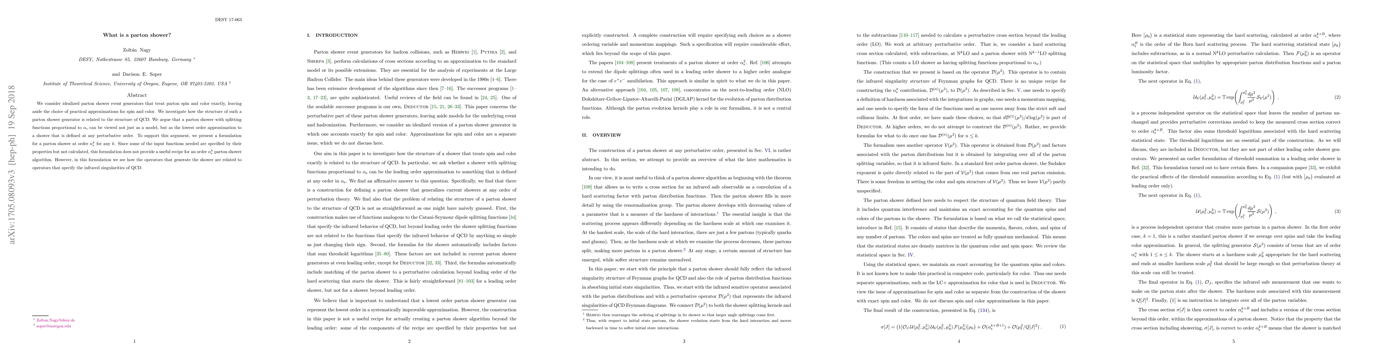 This paper explores idealized parton shower event generators that precisely account for parton spin and color, arguing that such a parton shower can be seen as the lowest order approximation to a perturbative order defined shower. It presents a formulation for parton showers at any order $\alpha_s^k$, highlighting the connection between shower operators and QCD's infrared singularities.