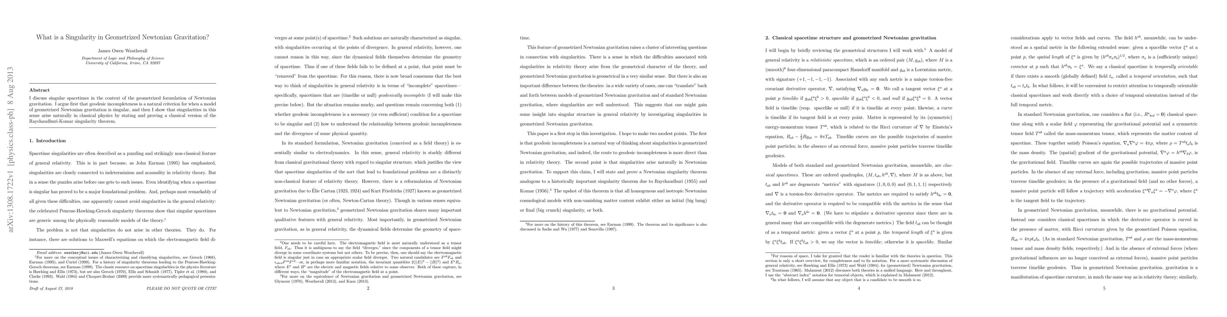 The research uses a geometrized formulation of Newtonian gravitation to analyze singular spacetimes.