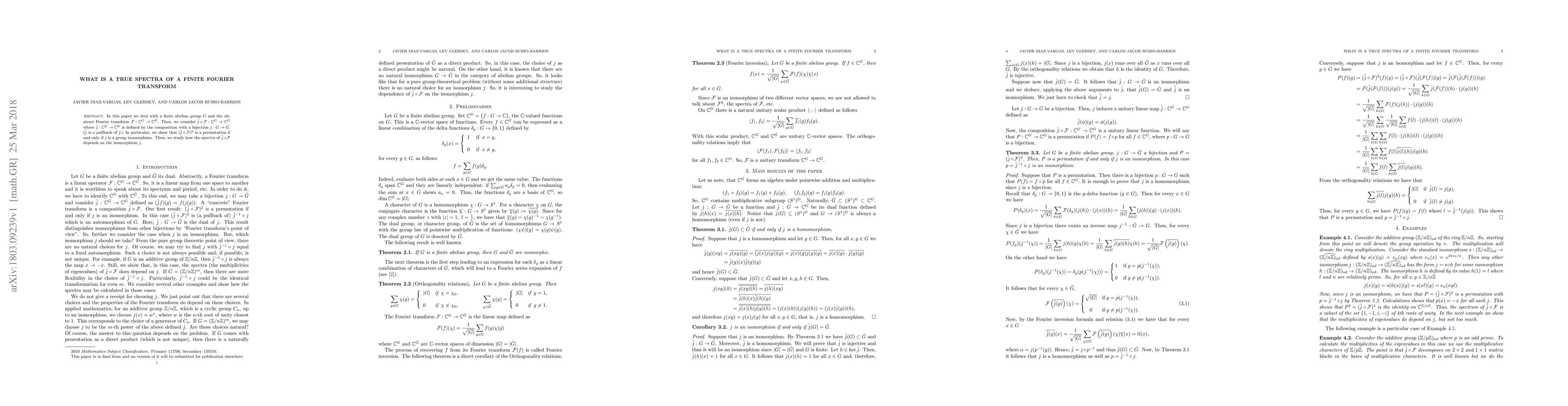 In this paper we deal with a finite abelian group $G$ and the abstract Fourier transform ${\mathcal F}:{\mathbb C}^G\to {\mathbb C}^\hat{G}$. Then, we consider $\tilde{j}\circ {\mathcal F}:{\mathbb C}^G\to {\mathbb C}^\hat{G}$ where $\tilde j:{\mathbb C}^\hat{G}\to {\mathbb C}^G$ is defined by the composition with a bijection $j:G\to \hat{G}$. ($\tilde j$ is a pullback of $j$.) In particular, we show that $(\tilde{j}\circ {\mathcal F})^2$ is a permutation if and only if $j$ is a group isomorphism. Then, we study how the spectra of $\tilde{j}\circ{\mathcal F}$ depends on the isomorphism $j$.