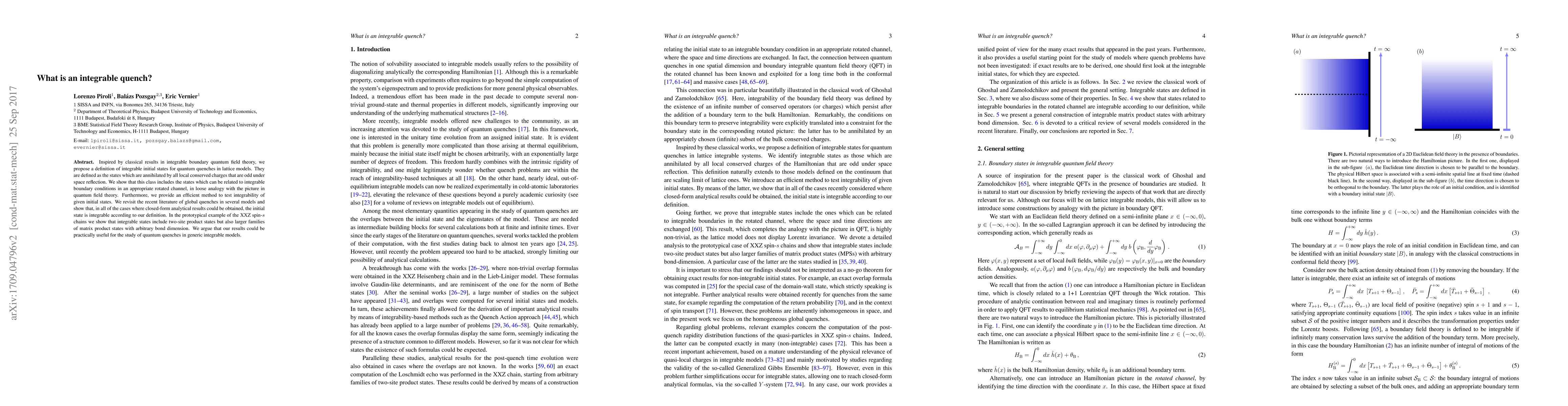 This paper proposes a definition of integrable initial states for quantum quenches in lattice models, characterized by their annihilation by local conserved charges odd under space reflection. The authors provide a method to test this integrability and demonstrate its applicability in various models, including the XXZ spin chains.