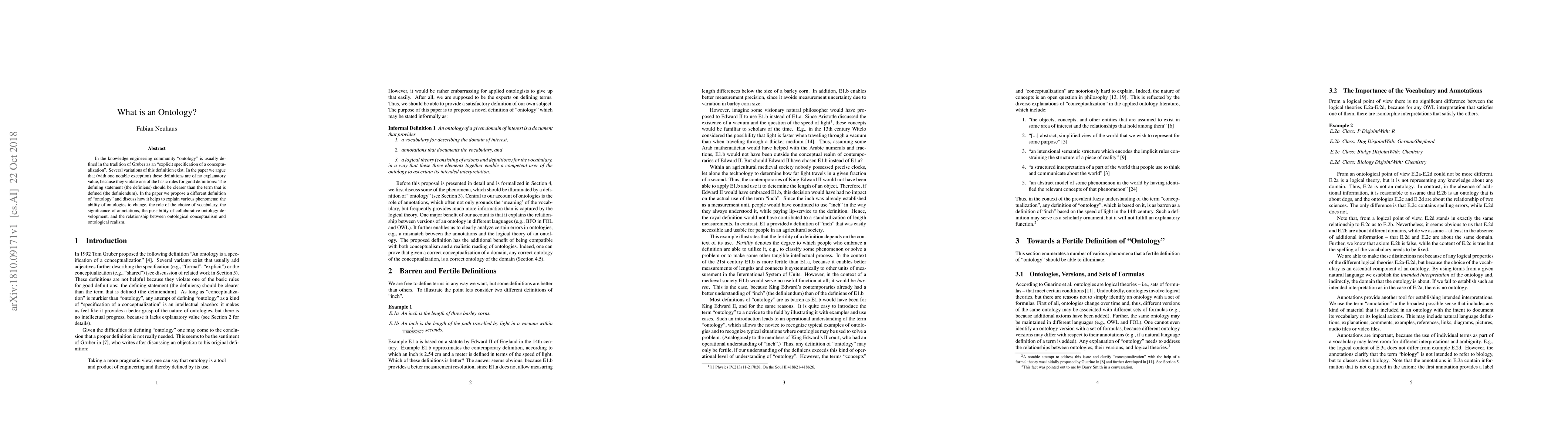This paper critiques existing definitions of "ontology" in knowledge engineering, arguing they lack clarity. It proposes a new definition that better explains phenomena such as ontology change, vocabulary choice, annotations, collaborative development, and the link between conceptualism and realism.