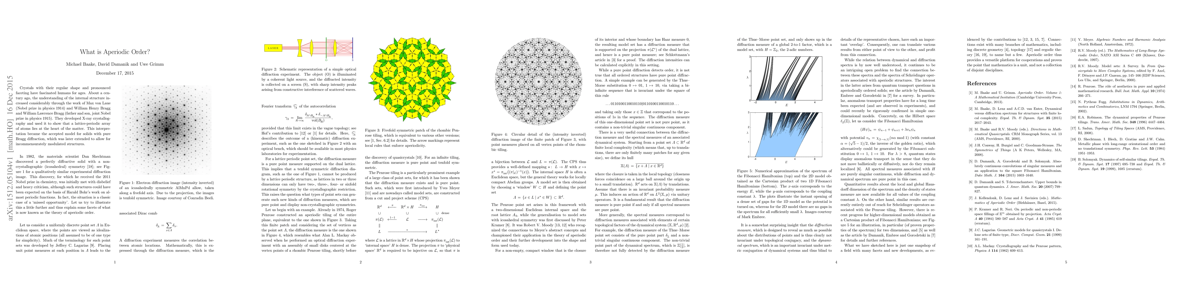 Summary: This article offers an introductory overview of the theory of aperiodic order, exploring its fundamental concepts and significance in mathematical and physical sciences. It aims to elucidate the structure and properties of systems that lack periodic repetition.