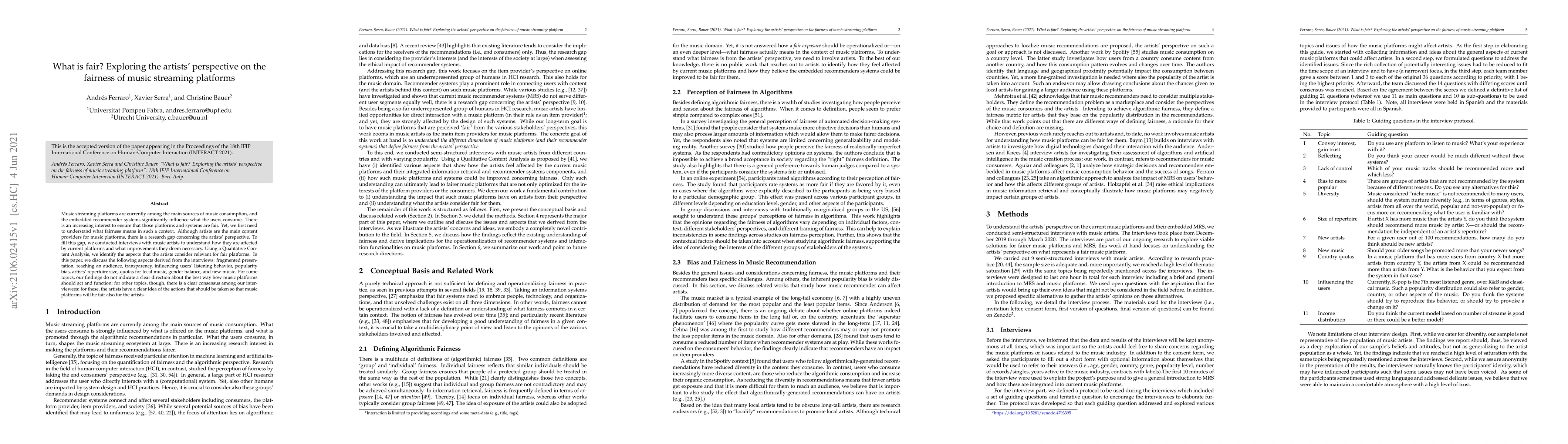 This study explores artists' perspectives on the fairness of music streaming platforms through interviews, identifying key issues such as fragmented presentation, audience reach, transparency, and popularity bias. While some aspects reveal no consensus, others, like gender balance and local music quotas, show clear artist demands for fairer platform practices.