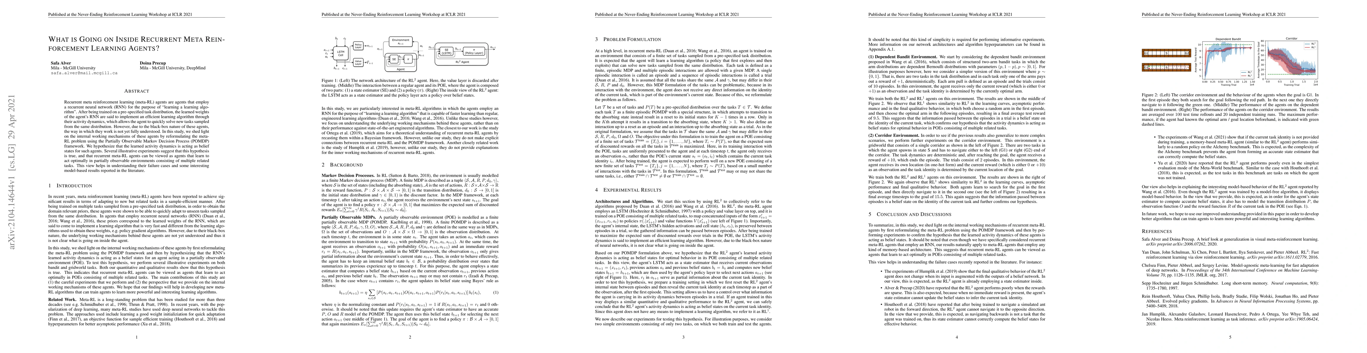 This study investigates the internal workings of recurrent meta reinforcement learning agents by framing the meta-RL problem within the POMDP framework, suggesting that the learned activity dynamics act as belief states. Experiments support the hypothesis that these agents learn to act optimally in partially observable environments with multiple related tasks.