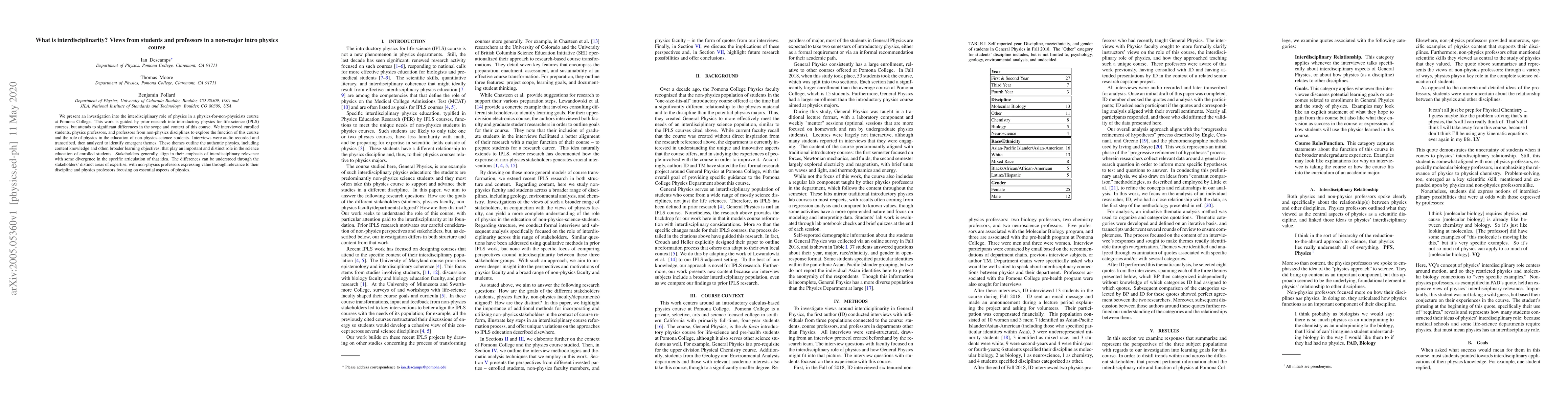 This study explores the interdisciplinary role of physics in a non-major introductory physics course at Pomona College, revealing that students and professors from various disciplines generally agree on its relevance but differ in how they articulate its importance based on their expertise. The findings highlight the distinct yet complementary perspectives on physics education among stakeholders.
