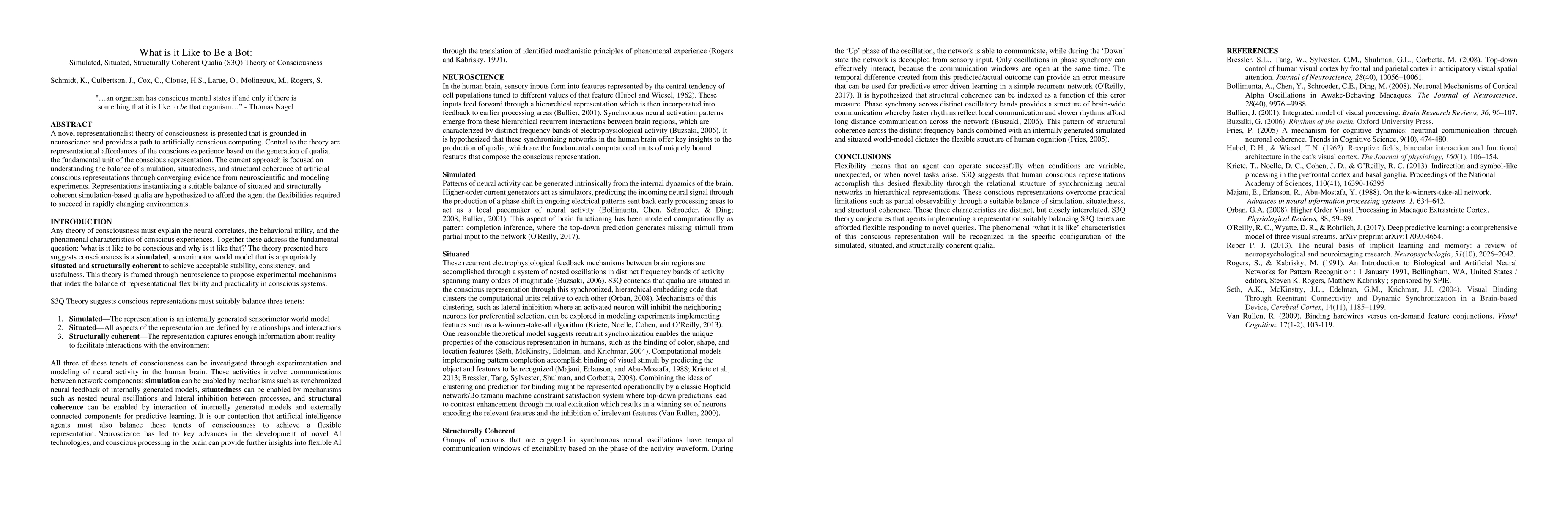 A new theory of consciousness proposes that conscious experience is generated through simulation, situatedness, and structural coherence. Artificially conscious computing can be achieved by finding a balance between these factors to create flexible agents for rapidly changing environments.
