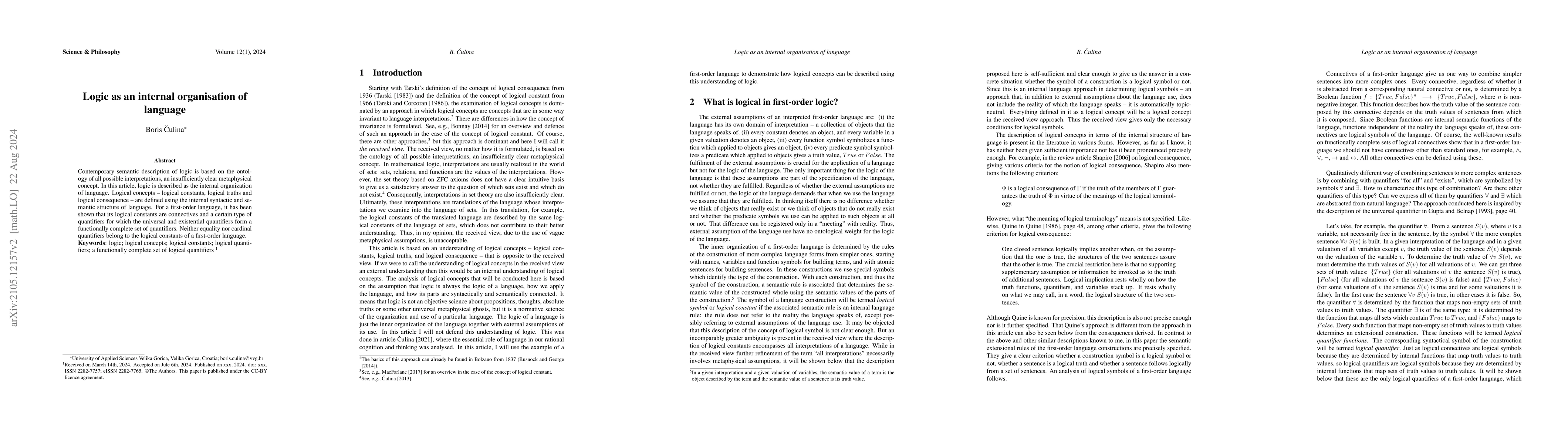 It concludes that the universal and existential quantifiers form a functionally complete set in first-order logic.