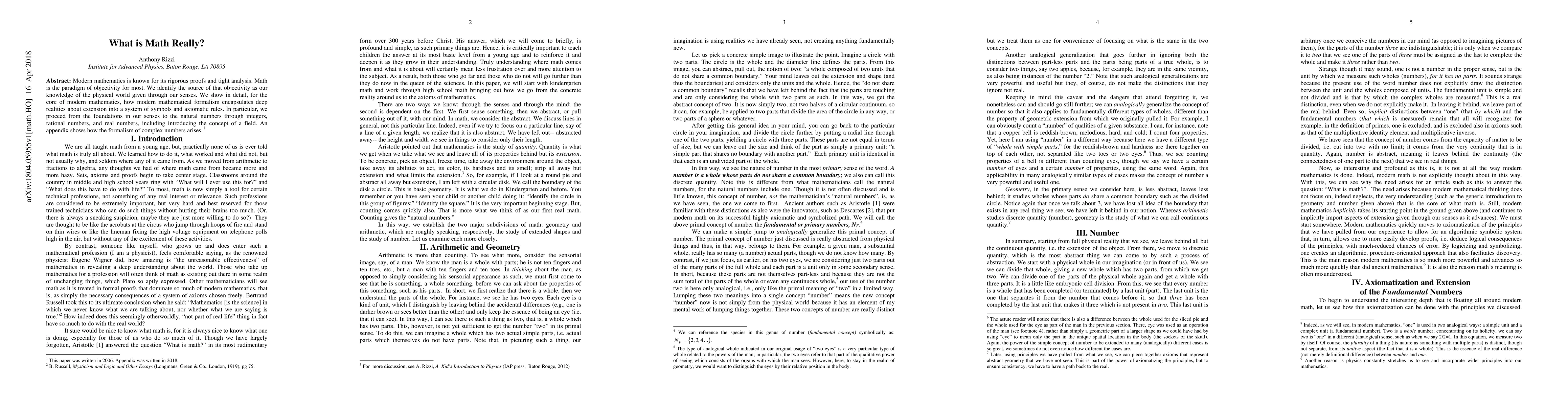Modern mathematics is known for its rigorous proofs and tight analysis. Math is the paradigm of objectivity for most. We identify the source of that objectivity as our knowledge of the physical world given through our senses. We show in detail, for the core of modern mathematics, how modern mathematical formalism encapsulates deep realities about extension into a system of symbols and axiomatic rules. In particular, we proceed from the foundations in our senses to the natural numbers through integers, rational numbers, and real numbers, including introducing the concept of a field. An appendix shows how the formalism of complex numbers arises.