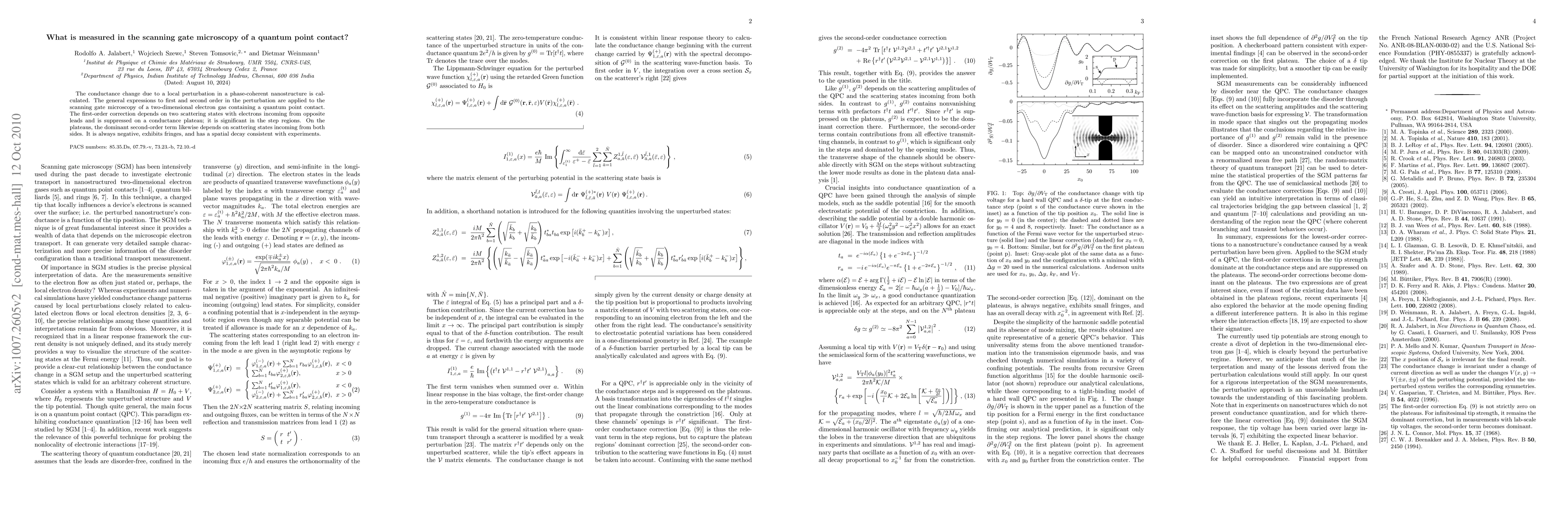 This paper investigates conductance changes in a quantum point contact via scanning gate microscopy, focusing on first- and second-order corrections to local perturbations. The first-order correction is significant in step regions, while the second-order term, always negative and exhibiting fringes, aligns with experimental observations.