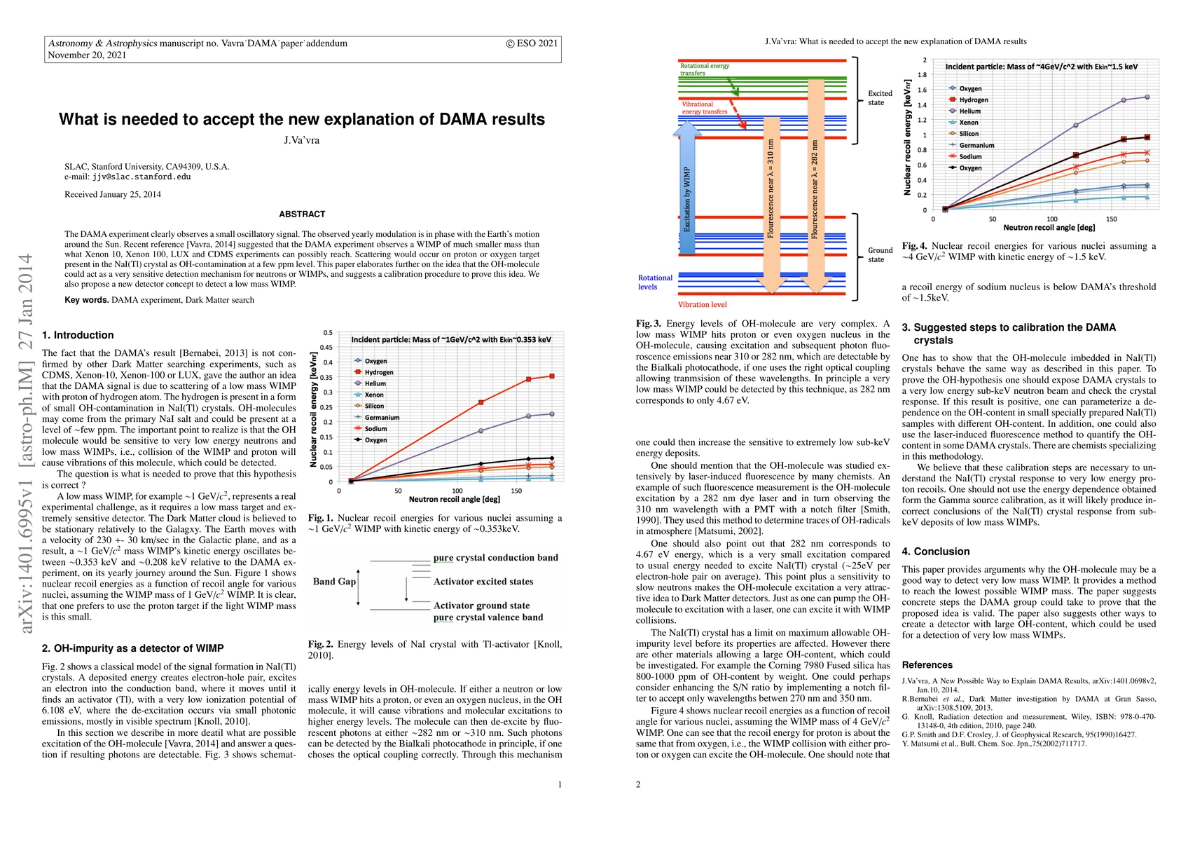 The DAMA experiment clearly observes a small oscillatory signal. The observed yearly modulation is in phase with the Earth's motion around the Sun. Recent reference [Vavra, 2014] suggested that the DAMA experiment observes a WIMP of much smaller mass than what Xenon 10, Xenon 100, LUX and CDMS experiments can possibly reach. Scattering would occur on proton or oxygen target present in the NaI(Tl) crystal as OH-contamination at a few ppm level. This paper elaborates further on the idea that the OH-molecule could act as a very sensitive detection mechanism for neutrons or WIMPs, and suggests a calibration procedure to prove this idea. We also propose a new detector concept to detect a low mass WIMP.