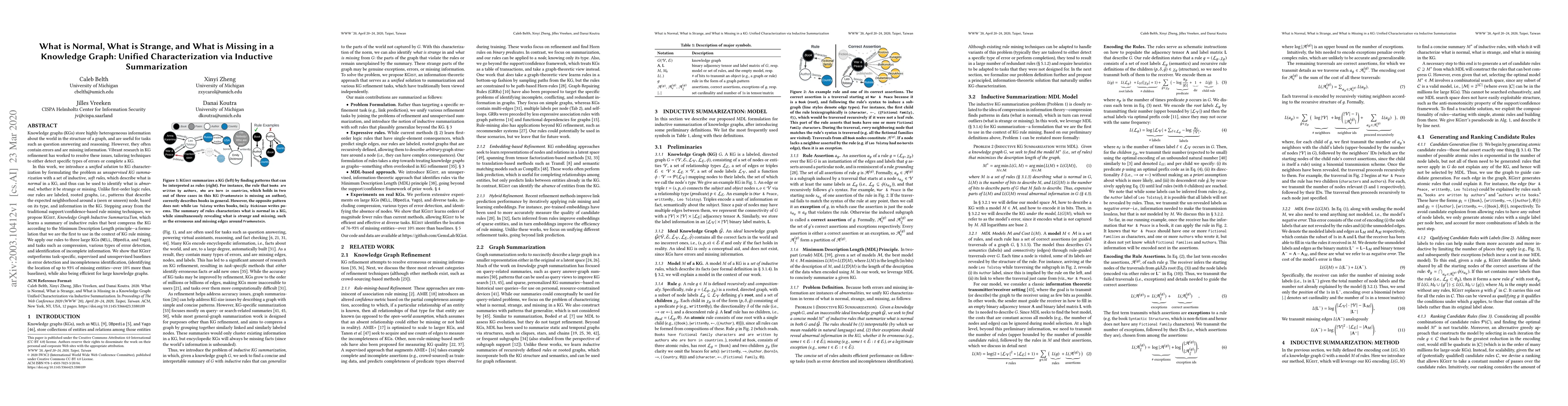 This paper introduces KGist, a method for unsupervised summarization of knowledge graphs (KGs) using inductive, soft rules to identify normal, strange, and missing information. KGist learns patterns to compress KGs based on the Minimum Description Length principle, outperforming baselines in error detection and identifying up to 93% of missing entities.