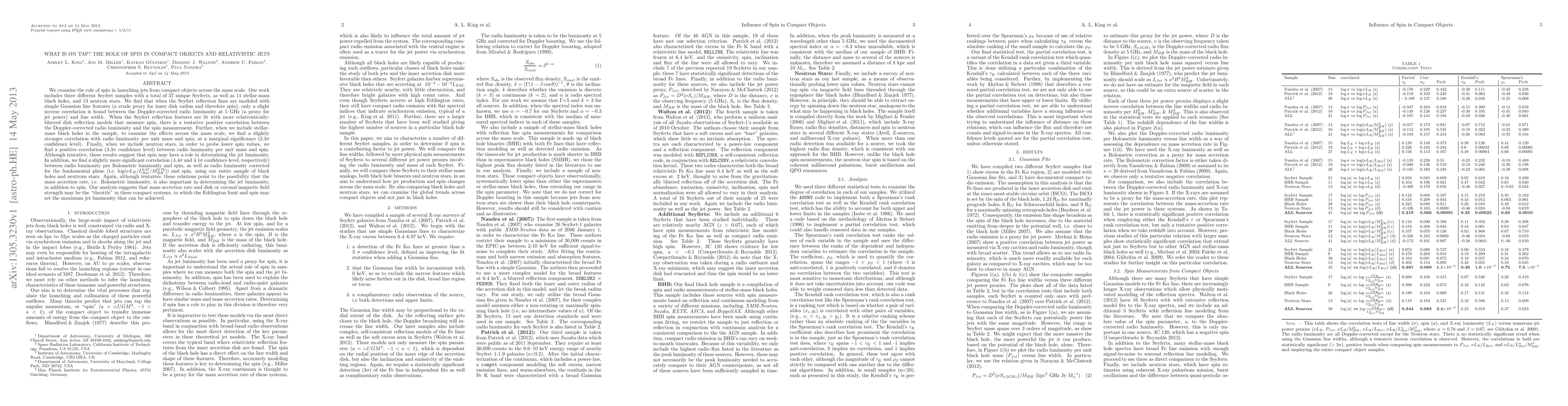 We examine the role of spin in launching jets from compact objects across the mass scale. Our work includes a total of 37 Seyferts, 11 stellar-mass black holes, and 13 neutron stars. We find that when the Seyfert reflection lines are modeled with Gaussian line features (a crude proxy for inner disk radius and therefore spin), only a slight inverse correlation is found between the Doppler-corrected radio luminosity at 5 GHz (a proxy for jet power) and line width. When the Seyfert reflection features are fit with relativistically-blurred disk reflection models that measure spin, there is a tentative positive correlation between the Doppler-corrected radio luminosity and the spin measurement. Further, when we include stellar-mass black holes in the sample, to examine the effects across the mass scale, we find a slightly stronger correlation with radio luminosity per unit mass and spin, at a marginal significance (2.3 sigma confidence level). Finally, when we include neutron stars, in order to probe lower spin values, we find a positive correlation (3.3 sigma confidence level) between radio luminosity per unit mass and spin. Although tentative, these results suggest that spin may have a role in determining the jet luminosity. In addition, we find a slightly more significant correlation (4.4 sigma confidence level) between radio luminosity per Bolometric luminosity and spin, using our entire sample of black holes and neutrons stars. Again, although tentative, these relations point to the possibility that the mass accretion rate, i.e. Bolometric luminosity, is also important in determining the jet luminosity, in addition to spin. Our analysis suggests that mass accretion rate and disk or coronal magnetic field strength may be the "throttle" in these compact systems, to which the Eddington limit and spin may set the maximum jet luminosity that can be achieved.