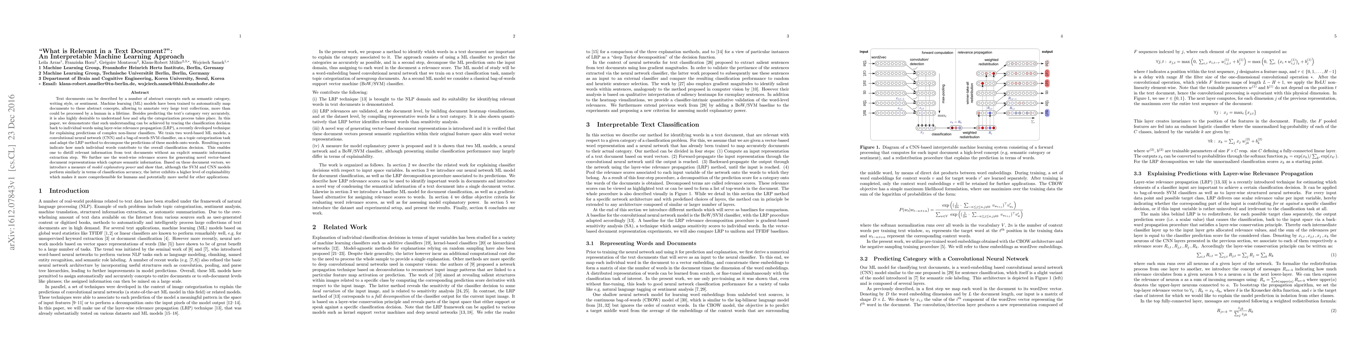 This paper introduces an interpretable machine learning approach using layer-wise relevance propagation to explain how text categorization models make predictions, revealing more comprehensible results for humans.