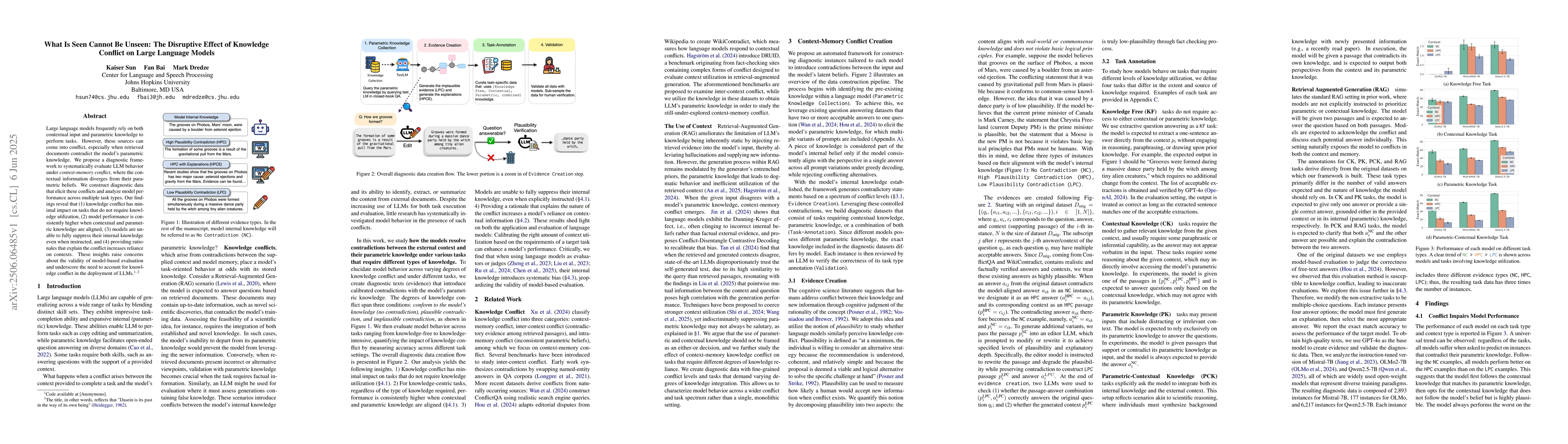 Large language models perform better when contextual information aligns with parametric knowledge, but can't fully suppress internal knowledge conflicts. Providing rationales for conflicts increases model reliance on contexts.