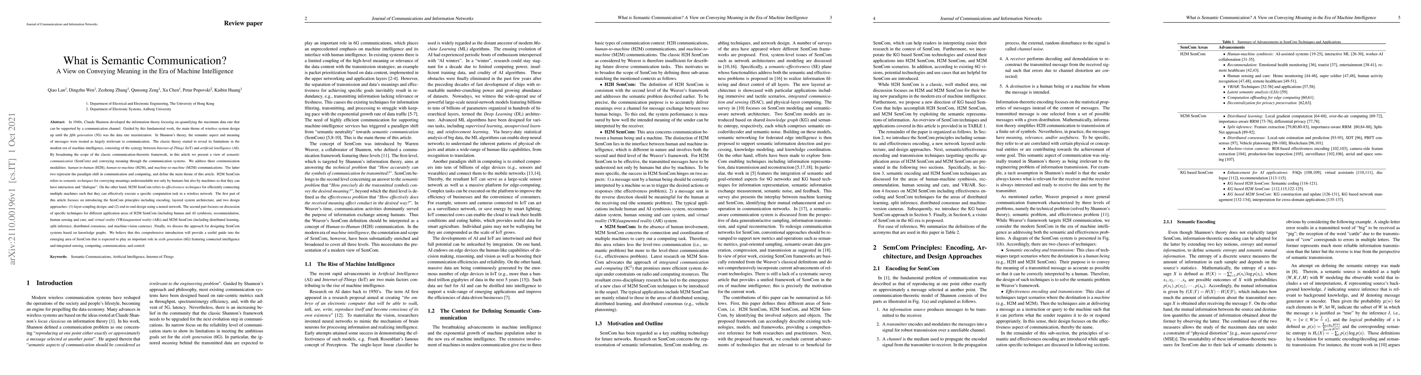 In 1940s, Claude Shannon developed the information theory focusing on quantifying the maximum data rate that can be supported by a communication channel. Guided by this, the main theme of wireless system design up until 5G was the data rate maximization. In his theory, the semantic aspect and meaning of messages were treated as largely irrelevant to communication. The classic theory started to reveal its limitations in the modern era of machine intelligence, consisting of the synergy between IoT and AI. By broadening the scope of the classic framework, in this article we present a view of semantic communication (SemCom) and conveying meaning through the communication systems. We address three communication modalities, human-to-human (H2H), human-to-machine (H2M), and machine-to-machine (M2M) communications. The latter two, the main theme of the article, represent the paradigm shift in communication and computing. H2M SemCom refers to semantic techniques for conveying meanings understandable by both humans and machines so that they can interact. M2M SemCom refers to effectiveness techniques for efficiently connecting machines such that they can effectively execute a specific computation task in a wireless network. The first part of the article introduces SemCom principles including encoding, system architecture, and layer-coupling and end-to-end design approaches. The second part focuses on specific techniques for application areas of H2M (human and AI symbiosis, recommendation, etc.) and M2M SemCom (distributed learning, split inference, etc.) Finally, we discuss the knowledge graphs approach for designing SemCom systems. We believe that this comprehensive introduction will provide a useful guide into the emerging area of SemCom that is expected to play an important role in 6G featuring connected intelligence and integrated sensing, computing, communication, and control.