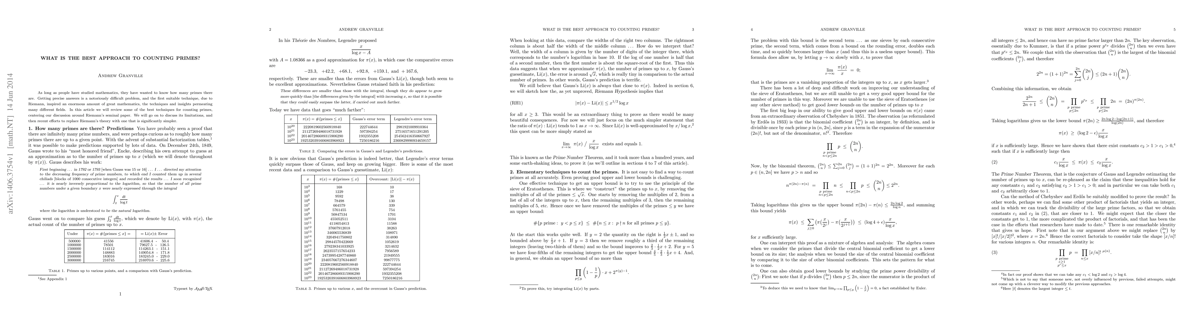 As long as people have studied mathematics, they have wanted to know how many primes there are. Getting precise answers is a notoriously difficult problem, and the first suitable technique, due to Riemann, inspired an enormous amount of great mathematics, the techniques and insights permeating many different fields. In this article we will review some of the best techniques for counting primes, centering our discussion around Riemann's seminal paper. We will go on to discuss its limitations, and then recent efforts to replace Riemann's theory with one that is significantly simpler.