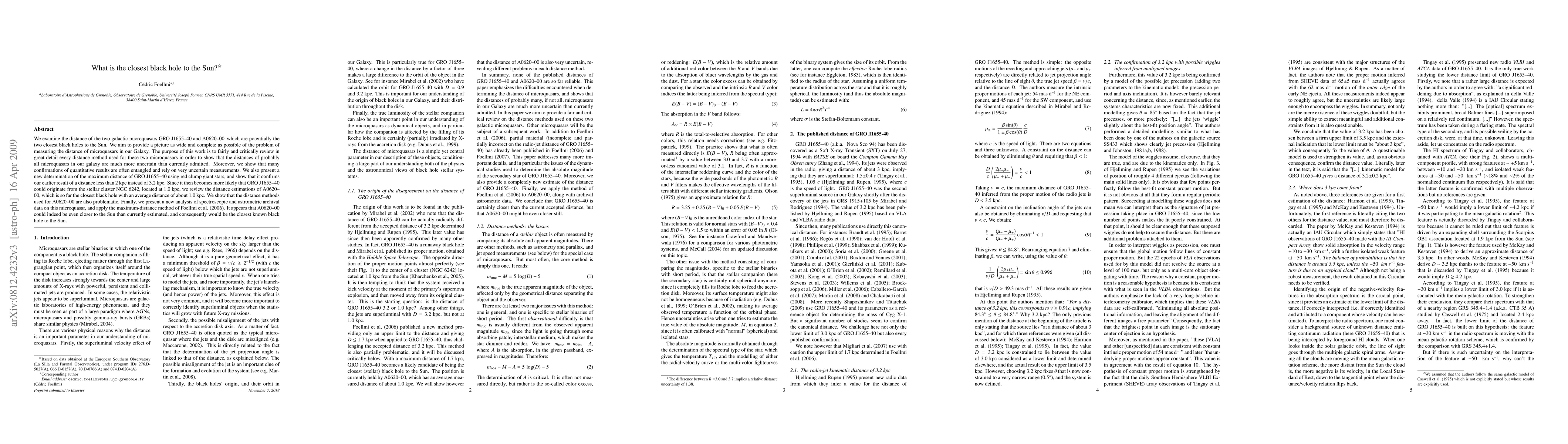 Research finds that distances to two black holes near the Sun, GRO J1655-40 and A0620-00, are uncertain and may actually be closer than previously thought, with A0620-00 potentially being the closest known black hole.