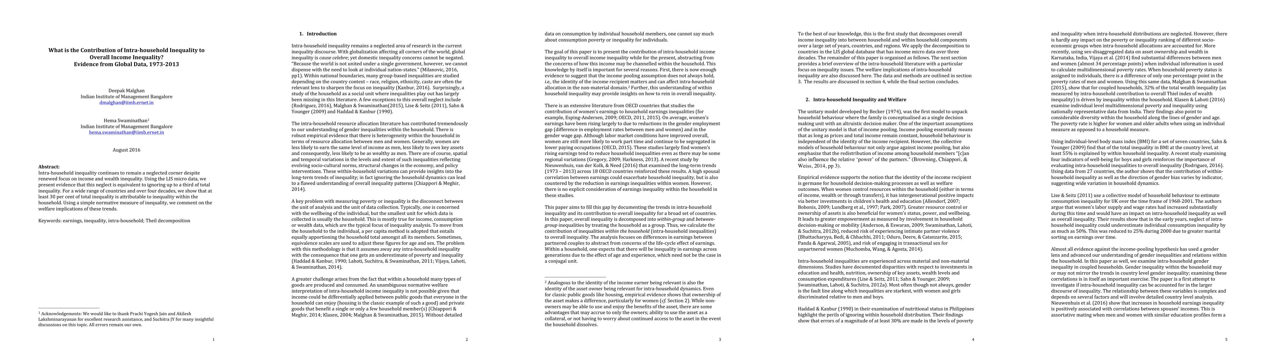 Intra-household inequality continues to remain a neglected corner despite renewed focus on income and wealth inequality. Using the LIS micro data, we present evidence that this neglect is equivalent to ignoring up to a third of total inequality. For a wide range of countries and over four decades, we show that at least 30 per cent of total inequality is attributable to inequality within the household. Using a simple normative measure of inequality, we comment on the welfare implications of these trends.