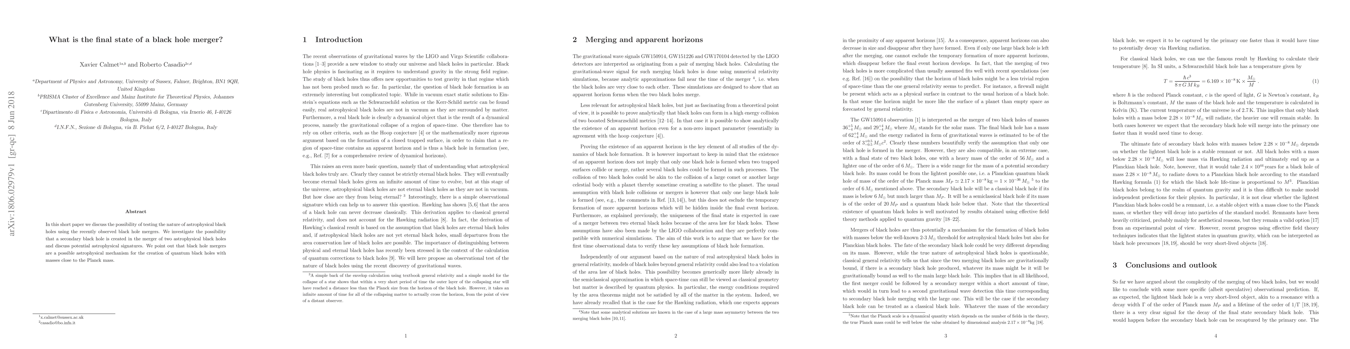 Researchers explore the possibility of testing black hole nature through mergers, suggesting a secondary black hole could form and potentially creating quantum black holes with masses near the Planck mass.