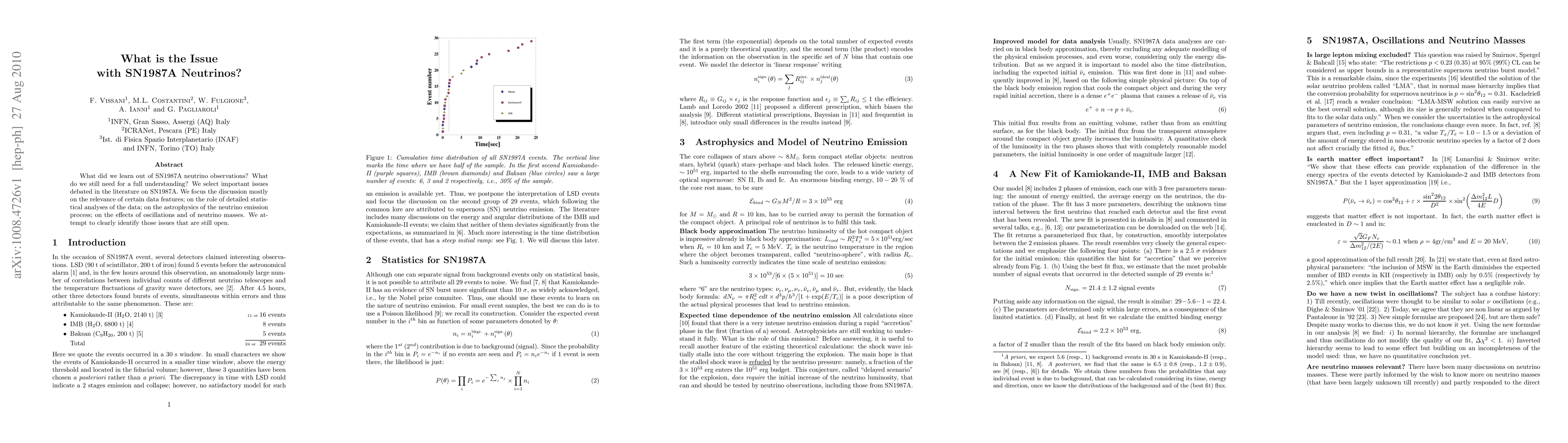 What did we learn out of SN1987A neutrino observations? What do we still need for a full understanding? We select important issues debated in the literature on SN1987A. We focus the discussion mostly on the relevance of certain data features; on the role of detailed statistical analyses of the data; on the astrophysics of the neutrino emission process; on the effects of oscillations and of neutrino masses. We attempt to clearly identify those issues that are still open.