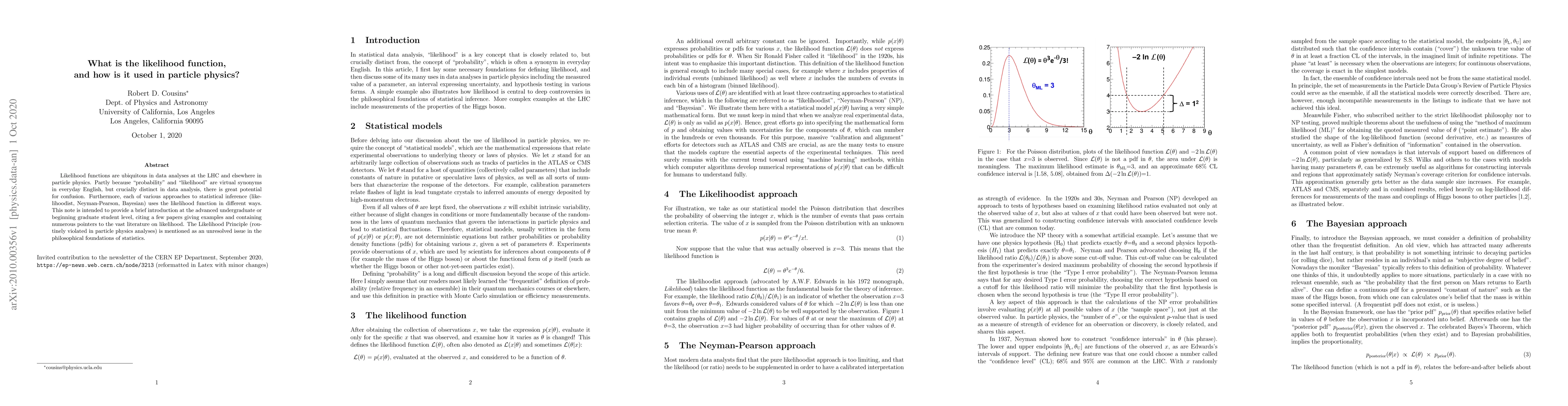 A research paper introduces the concept of likelihood functions in particle physics, explaining their distinction from probability and discussing different approaches to statistical inference. It aims to provide a clear understanding of likelihood functions for advanced undergraduate or beginning graduate students.