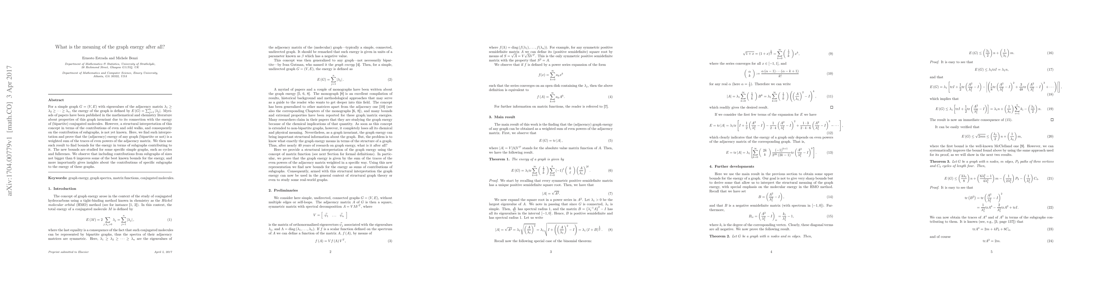 The research provides a structural interpretation of graph energy by expressing it as a weighted sum of traces of even powers of the adjacency matrix, using bounds derived from subgraphs' contributions.