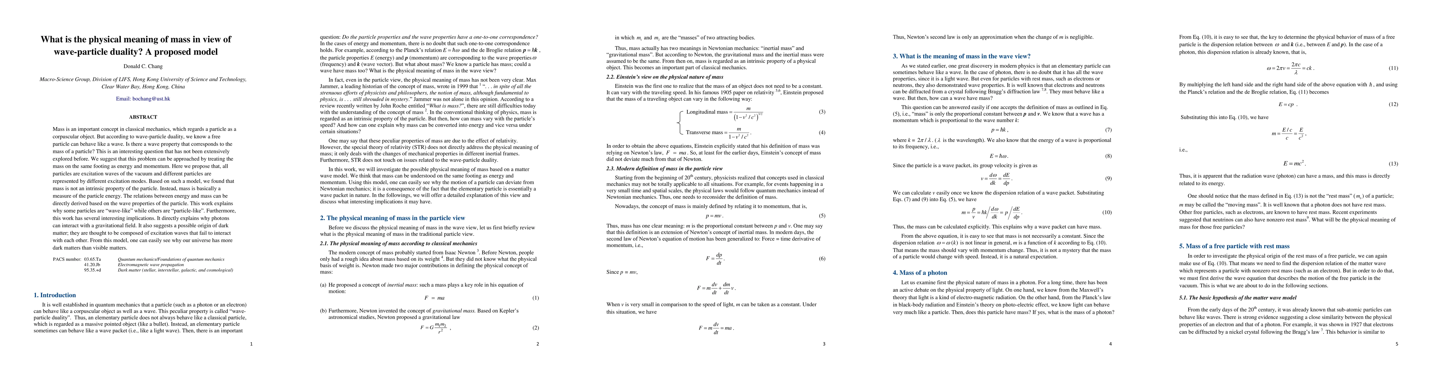 A proposed model suggests that mass is a measure of particle energy, derived from its wave properties, explaining why some particles interact with gravity and others behave like waves.