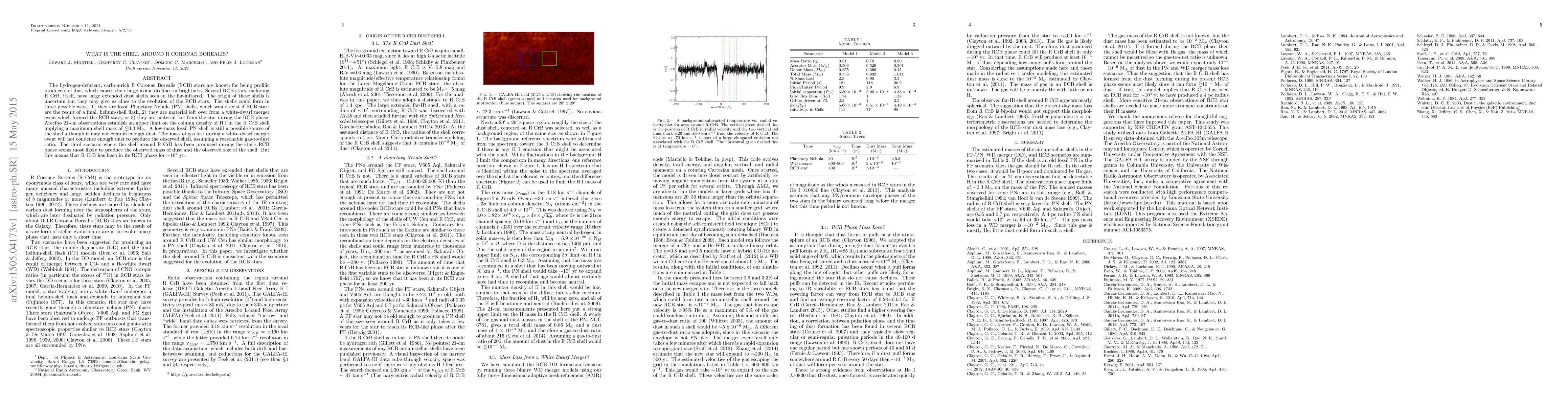 The hydrogen-deficient, carbon-rich R Coronae Borealis (RCB) stars are known for being prolific producers of dust which causes their large iconic declines in brightness. Several RCB stars, including R CrB, itself, have large extended dust shells seen in the far-infrared. The origin of these shells is uncertain but they may give us clues to the evolution of the RCB stars. The shells could form in three possible ways. 1) they are fossil Planetary Nebula (PN) shells, which would exist if RCB stars are the result of a final, helium-shell flash, 2) they are material left over from a white-dwarf merger event which formed the RCB stars, or 3) they are material lost from the star during the RCB phase. Arecibo 21-cm observations establish an upper limit on the column density of H I in the R CrB shell implying a maximum shell mass of $\lesssim$0.3 M$_{\odot}$. A low-mass fossil PN shell is still a possible source of the shell although it may not contain enough dust. The mass of gas lost during a white-dwarf merger event will not condense enough dust to produce the observed shell, assuming a reasonable gas-to-dust ratio. The third scenario where the shell around R CrB has been produced during the star's RCB phase seems most likely to produce the observed mass of dust and the observed size of the shell. But this means that R CrB has been in its RCB phase for $\sim$10$^{4}$ yr.