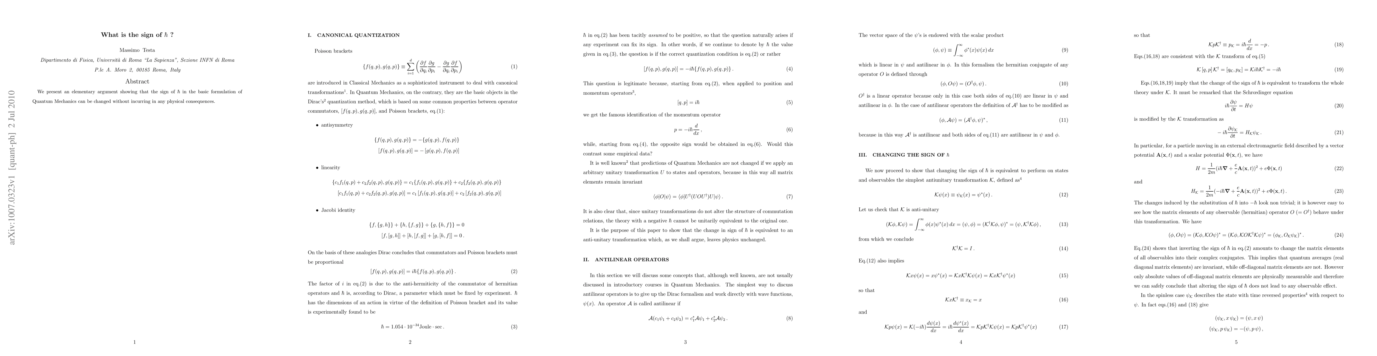A new argument suggests that the sign of Planck's constant ($eta$) in Quantum Mechanics can be changed without affecting physical outcomes. This implies that the fundamental principles of quantum theory may not be as rigid as previously thought.