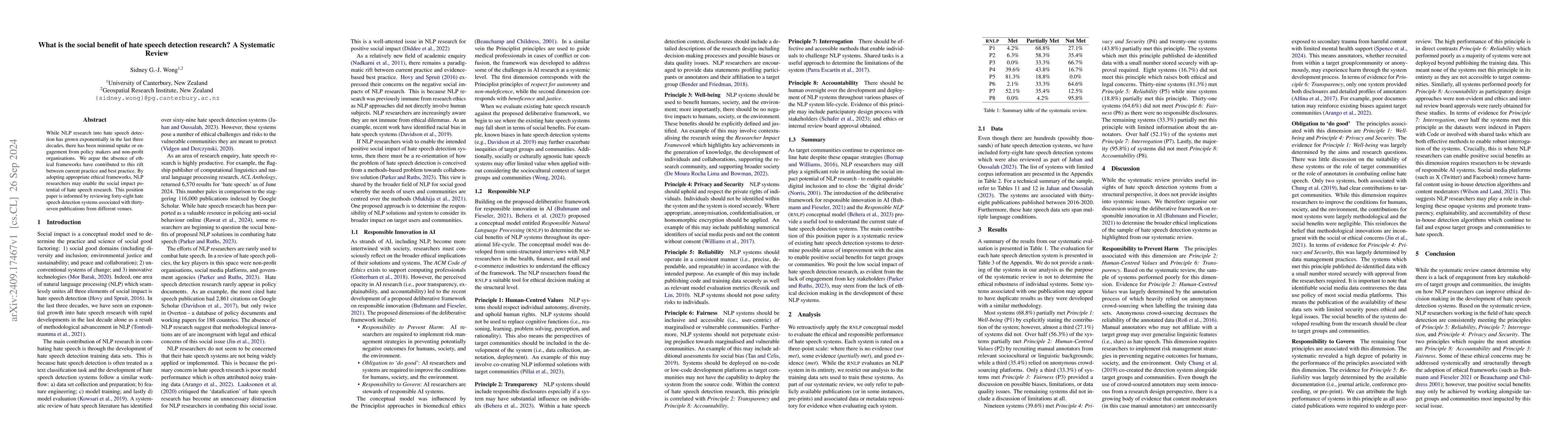 This paper reviews forty-eight hate speech detection systems and argues that the lack of ethical frameworks has hindered the uptake of such research by policymakers and non-profits, suggesting that adopting appropriate ethical frameworks could unlock the social benefits of hate speech detection.