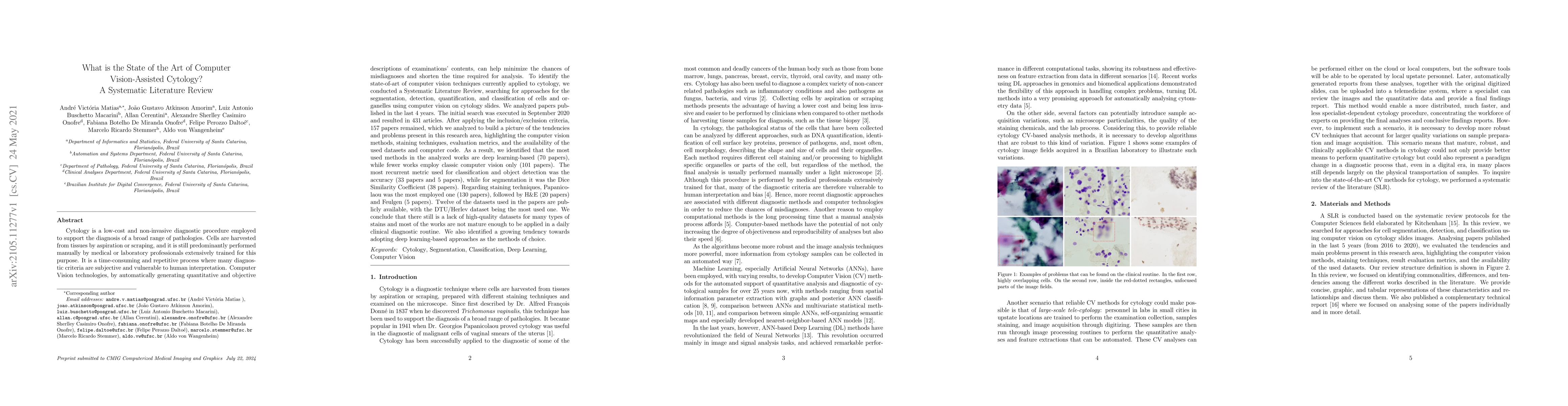 This systematic literature review identifies the current state of computer vision-assisted cytology, revealing a preference for deep learning methods over classic computer vision techniques. The most common evaluation metric is accuracy, and the Papanicolaou stain is the most frequently used. Despite the growing adoption of deep learning, there is still a lack of high-quality datasets and mature methods for clinical use.